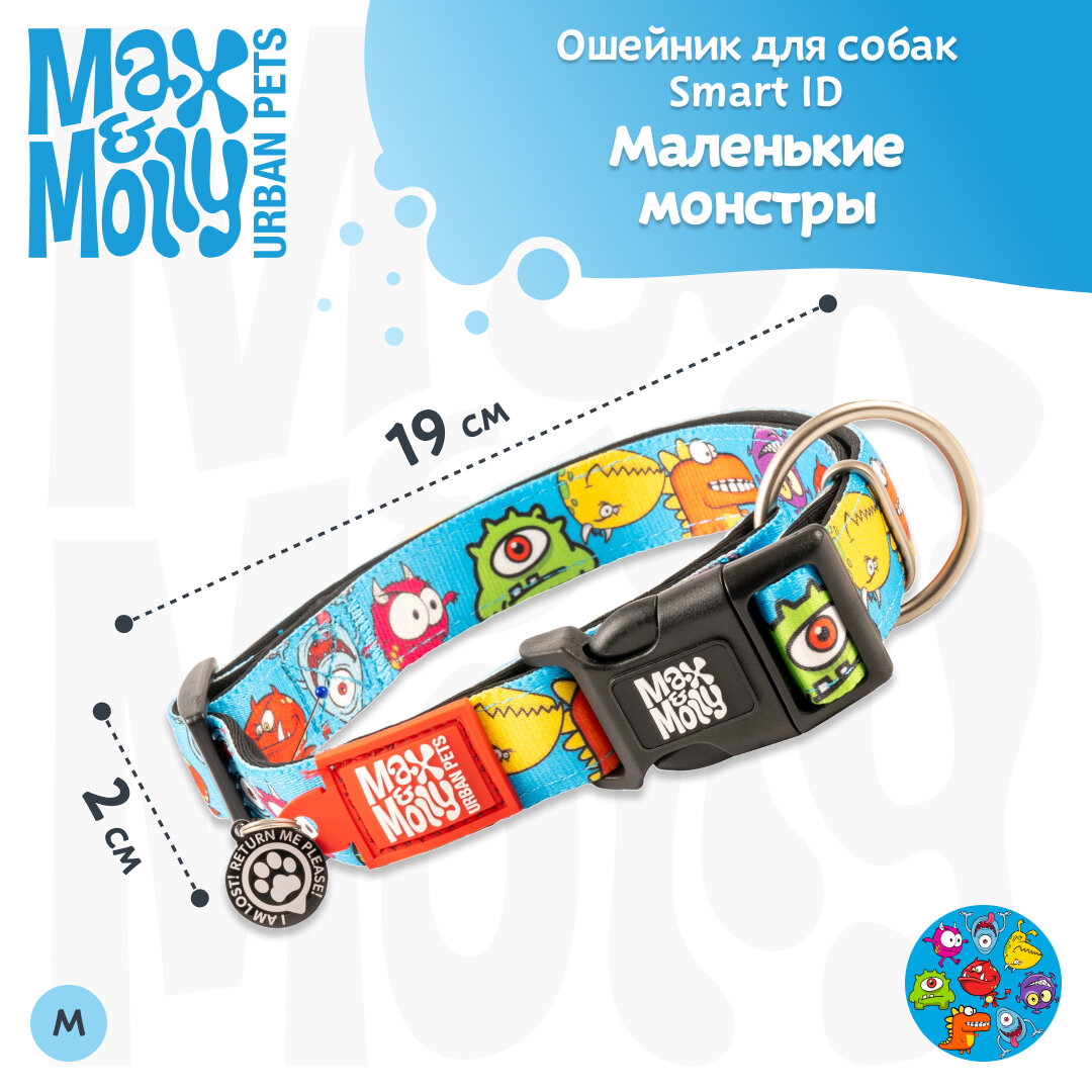 Ошейник для собак Smart ID, Размер M , Маленькие монстры Max & Molly информация: