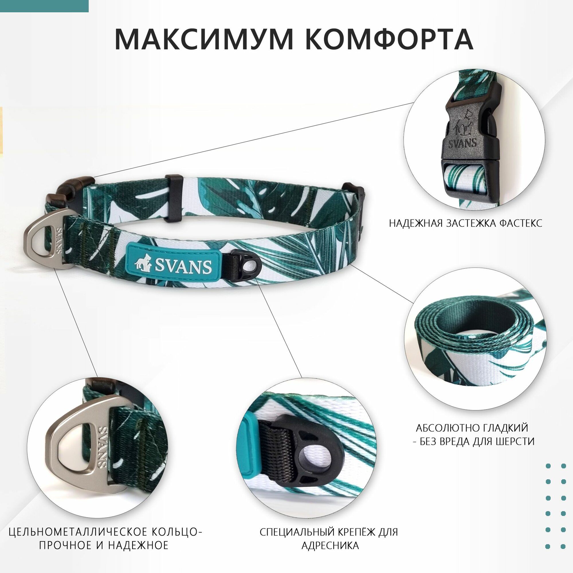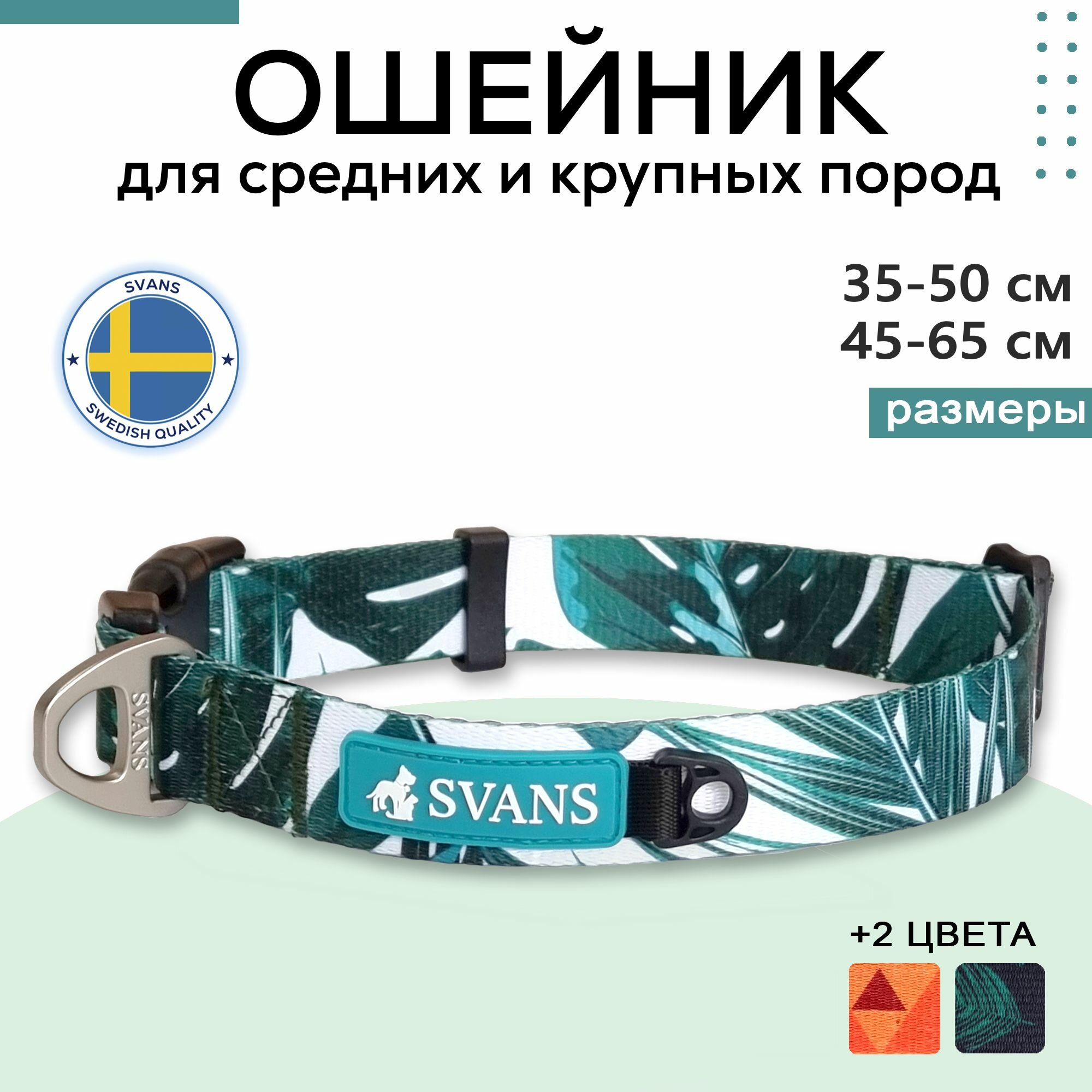 Отзывы на Ошейник SVANS с адресником, полиэстер, обхват шеи 45-65 см, L, зеленый