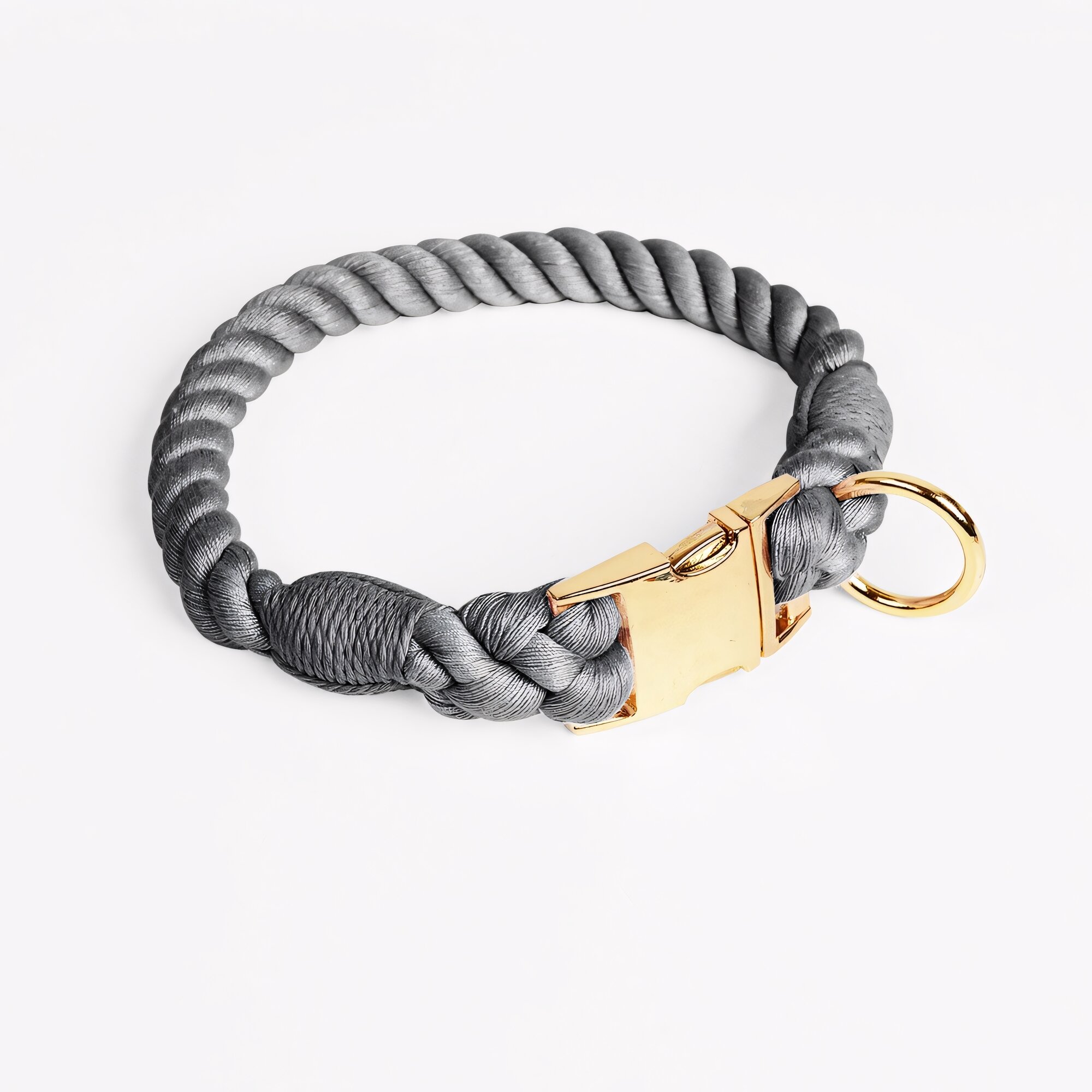 Ошейник и поводок для собак "Anti-lost" хлопковый плетеный с металлической фурнитурой XL/150 см, темно-серый 1 435 ₽
