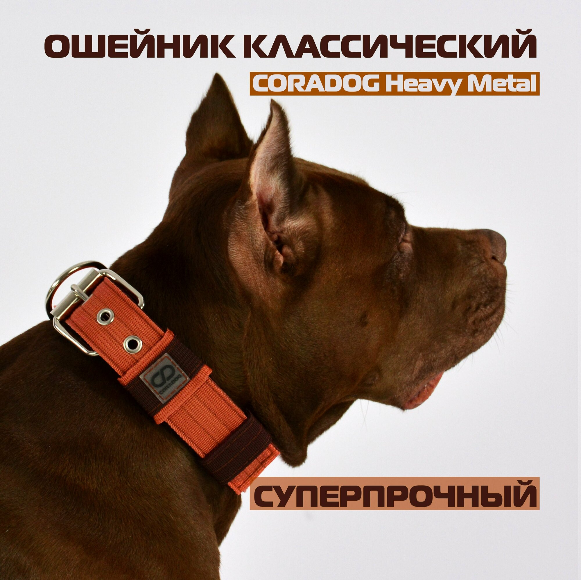 Отзывы на Ошейник высокопрочный, CORADOG Heavy Metal, для средних и крупных собак, терракотовый, коричневый, размер L 50-62 см