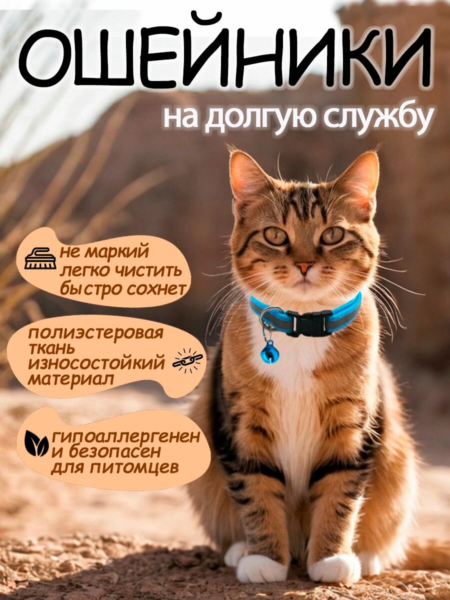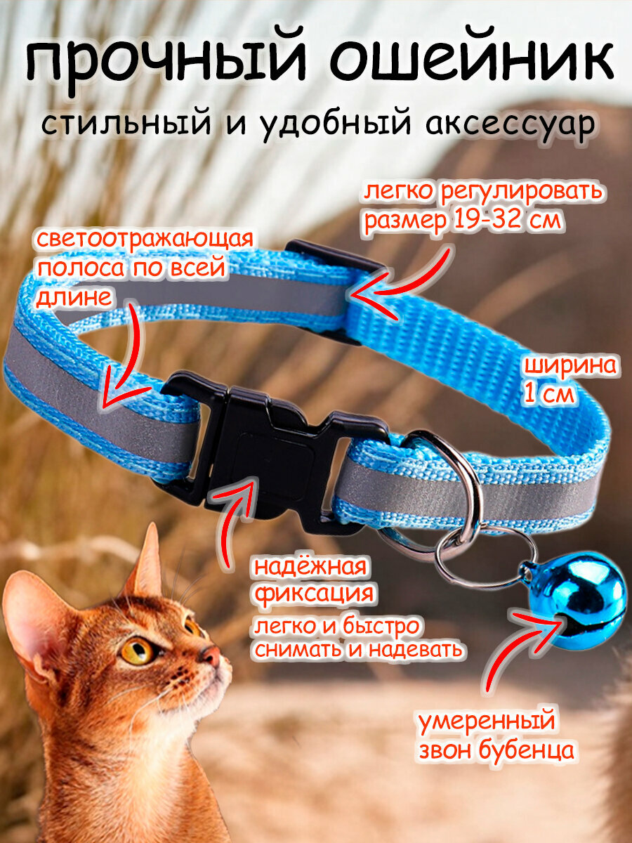 Отзывы на Ошейник для кошек и собак светоотражающий с колокольчиком голубой