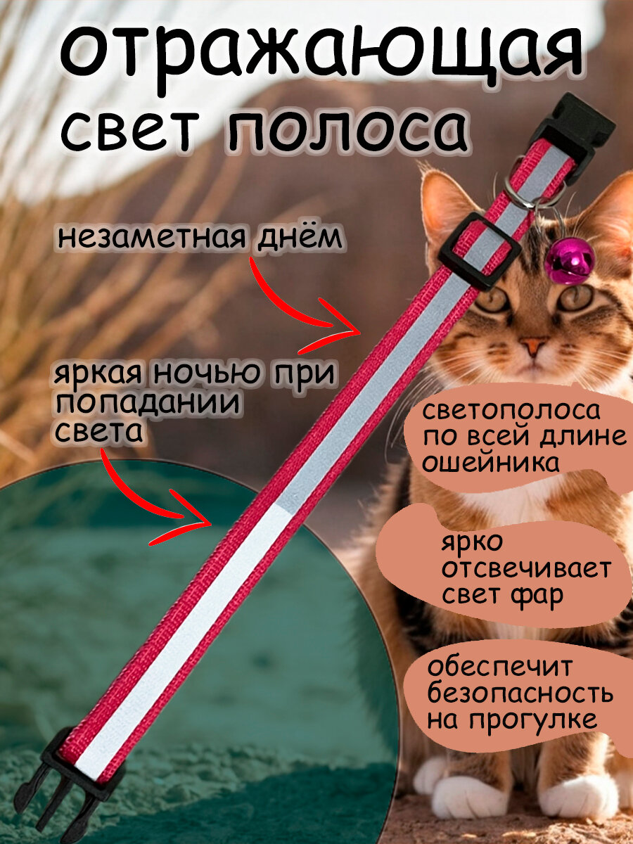 Ошейник для кошек и собак светоотражающий с колокольчиком розовый и светоотражающей полосой информация: