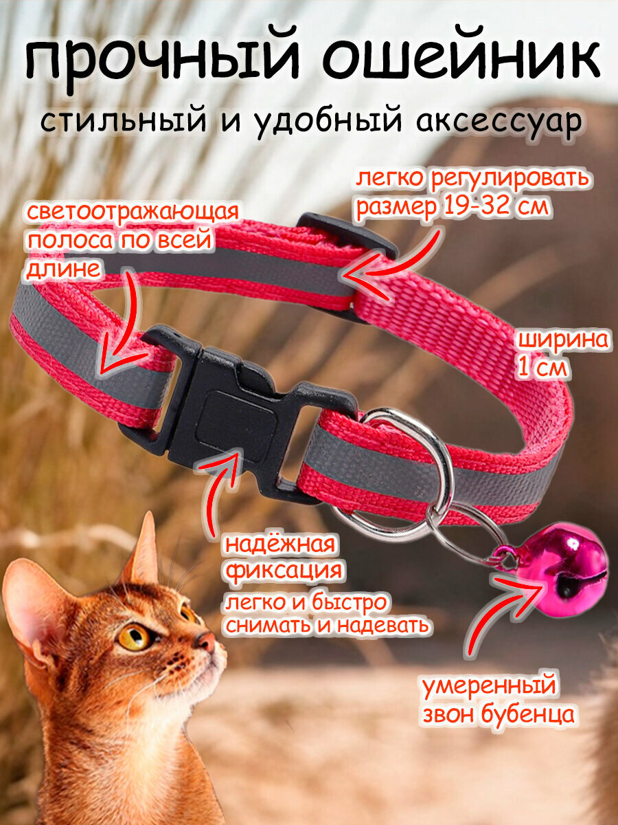 Отзывы на Ошейник для кошек и собак светоотражающий с колокольчиком розовый и светоотражающей полосой