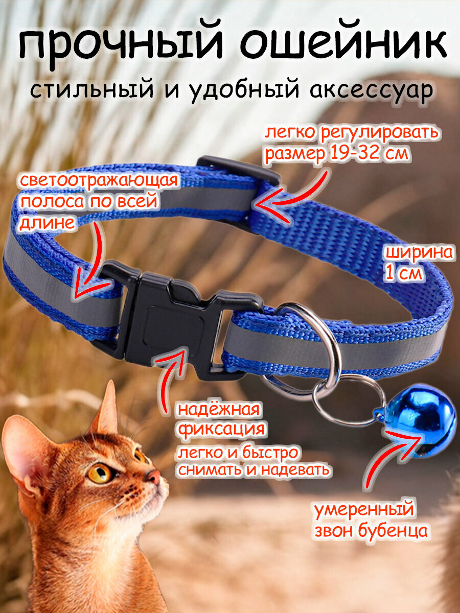 10 цен на Ошейник для кошек и собак светоотражающий с колокольчиком синий