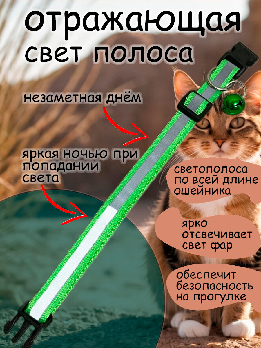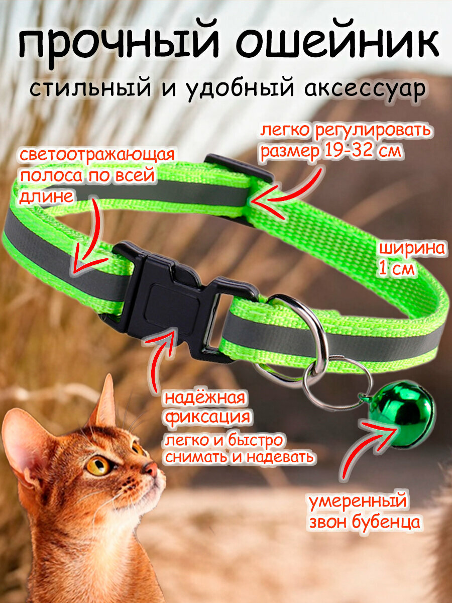 Отзывы на Ошейник для кошек и собак светоотражающий с колокольчиком зелёный - салатовый