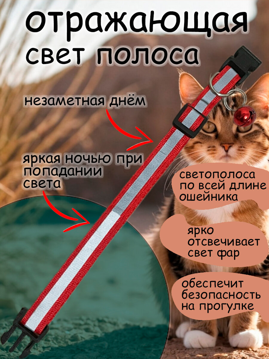 Ошейник для кошек и собак светоотражающий с колокольчиком красный информация: