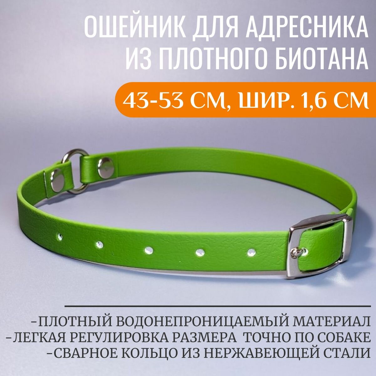 Отзывы на R-Dog ошейник для адресника из плотного биотана, цвет оливковый, 43-53 см, ширина 1,6 см