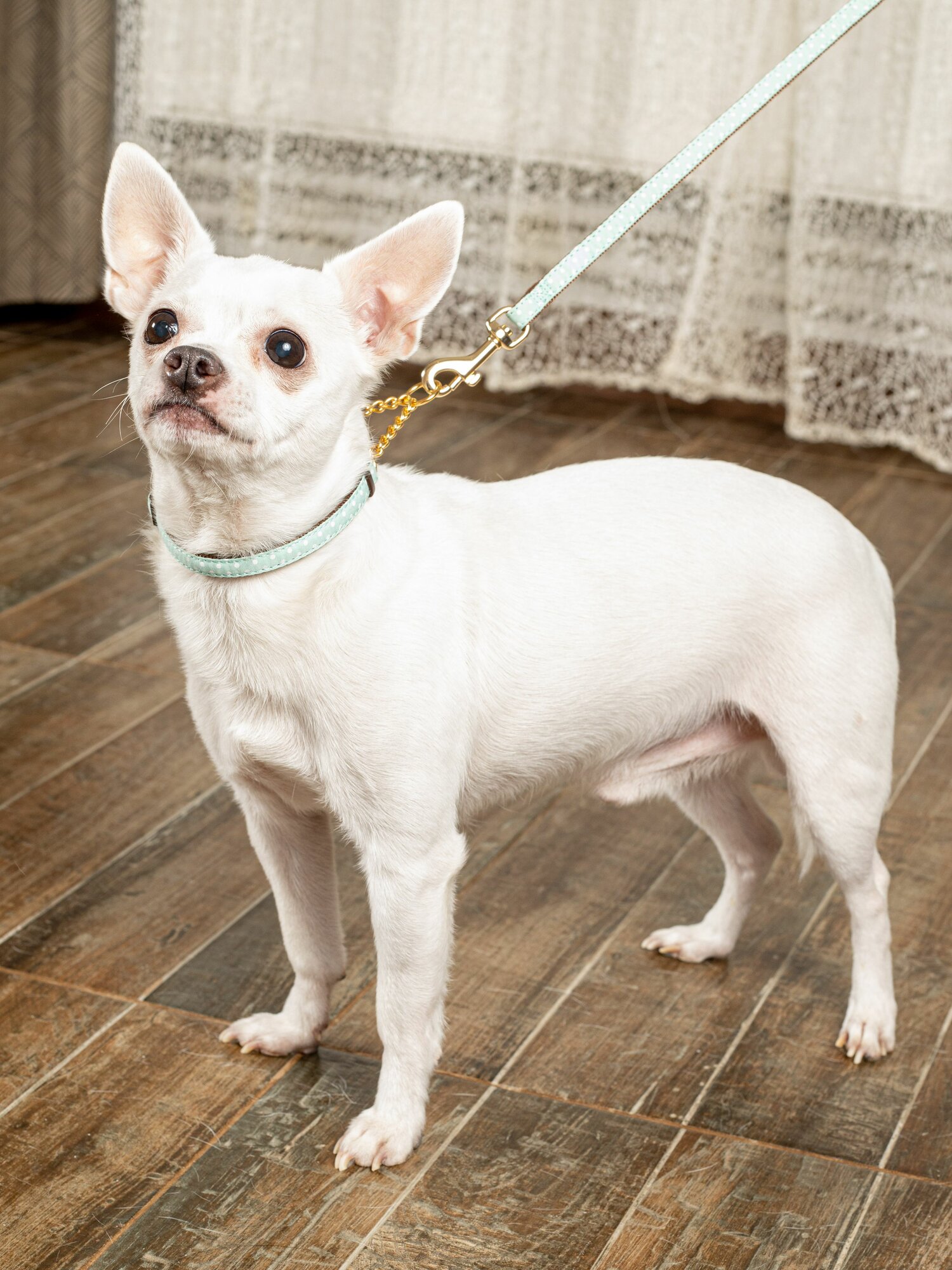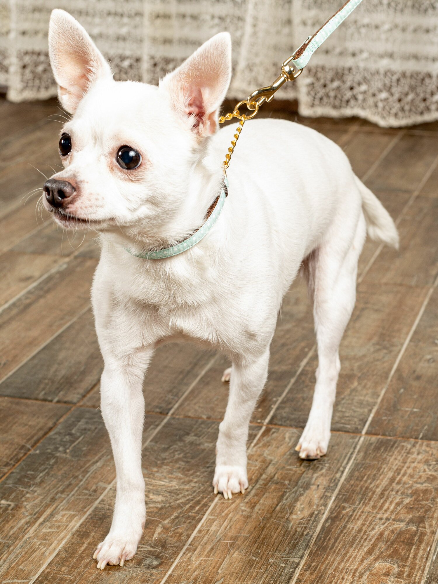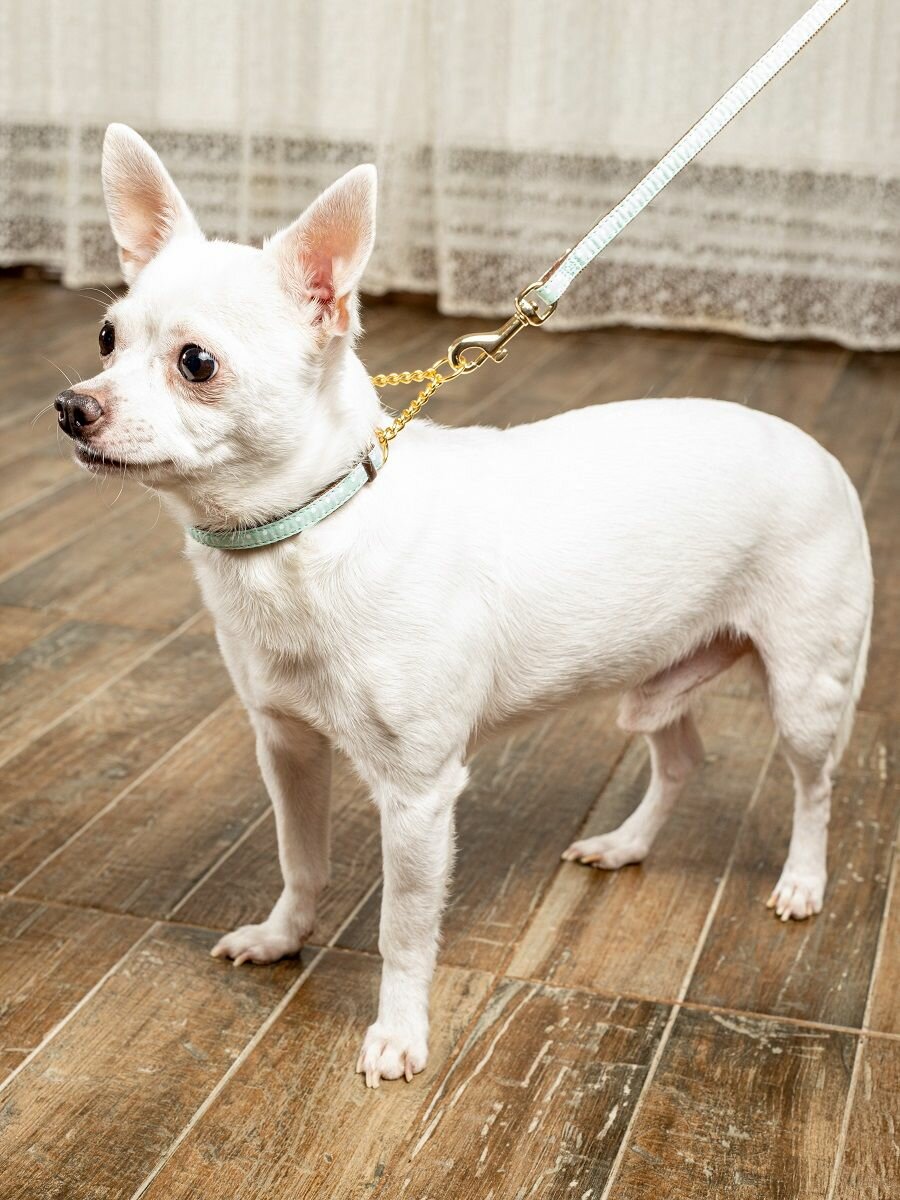 Ошейник-полуудавка Japan Premium Pet с цепочкой гибридный в стиле эпохи наполеоновского амира, размер SS (цвет: ментол) информация:
