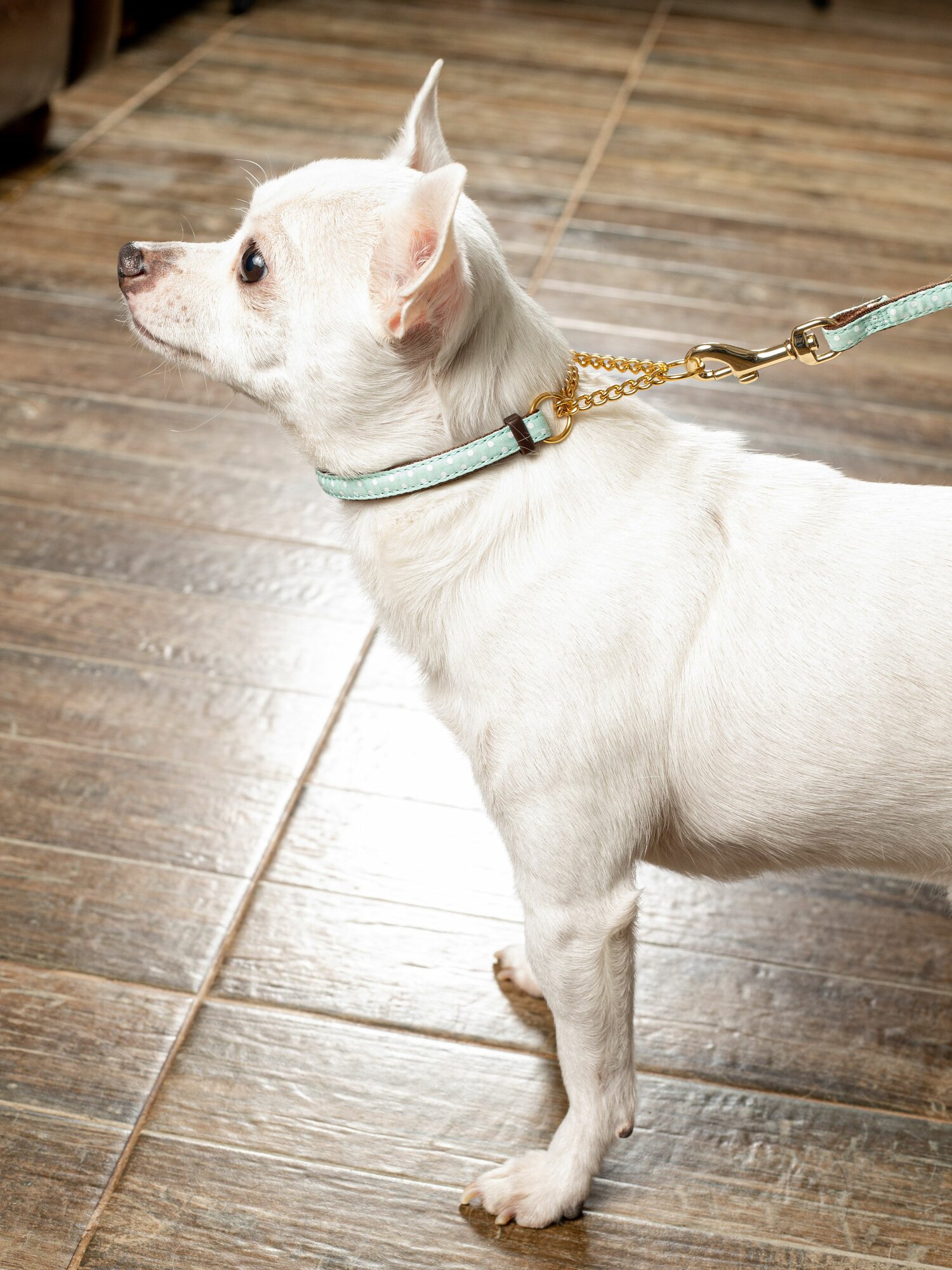 Ошейник-полуудавка Japan Premium Pet c позолоченной цепочкой гибридный в стиле эпохи наполеоновского амира, размер S (цвет: ментол)