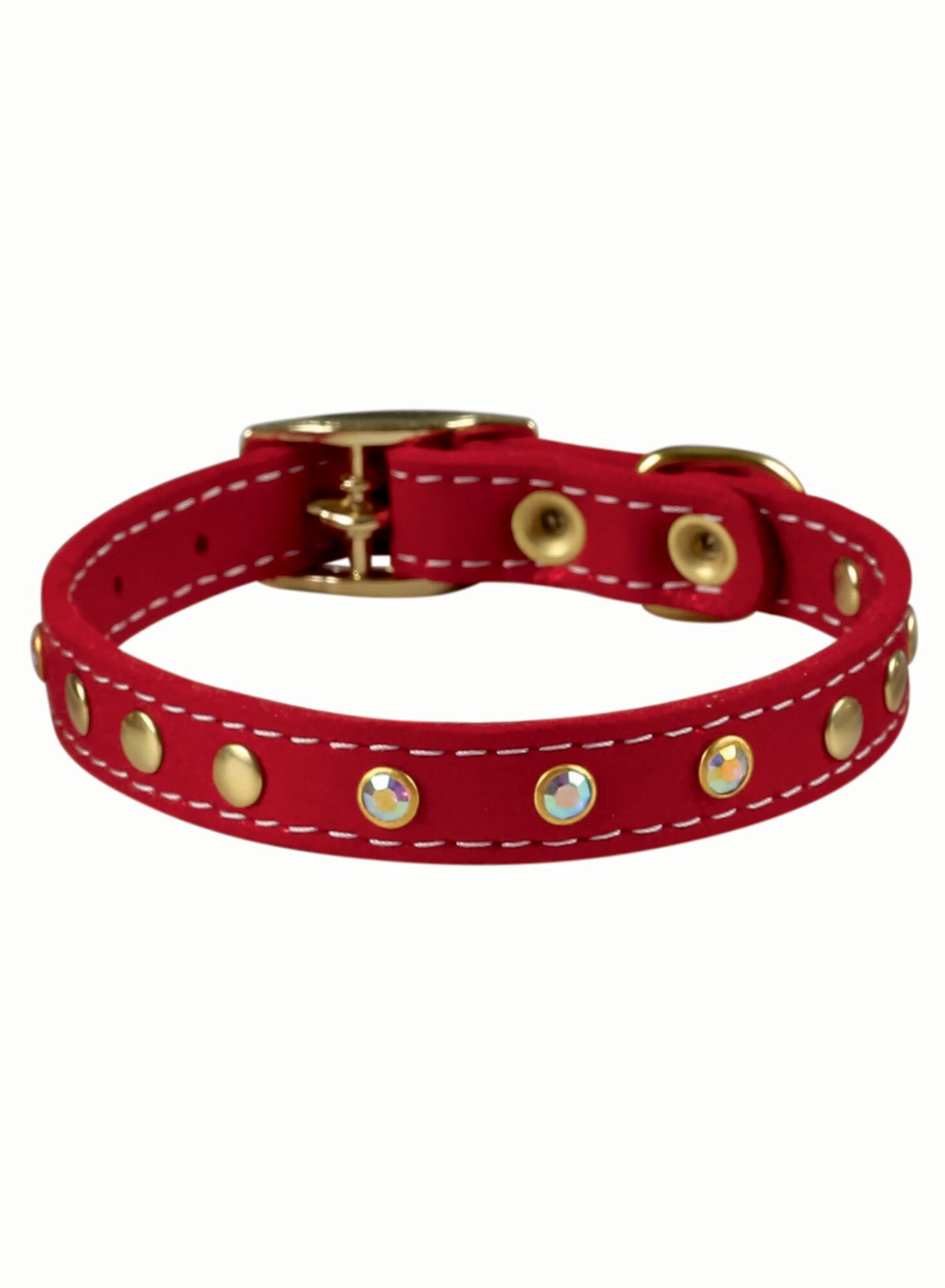 Ошейник с подвеской и стразами для собак мелких пород и кошек, из натуральной кожи и замши M