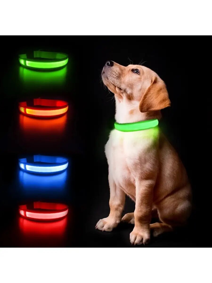 Светящийся ошейник для собак мелких средних и крупных пород светодиодный STELLYX, чёрный, размер L 499 ₽