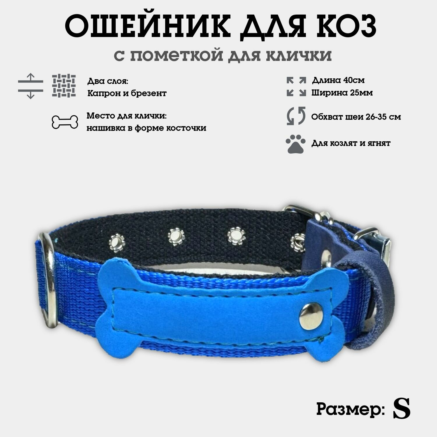Ошейник для коз, овец, козлят, ягнят, двуслойный из капрона и брезента, усиленный S информация: