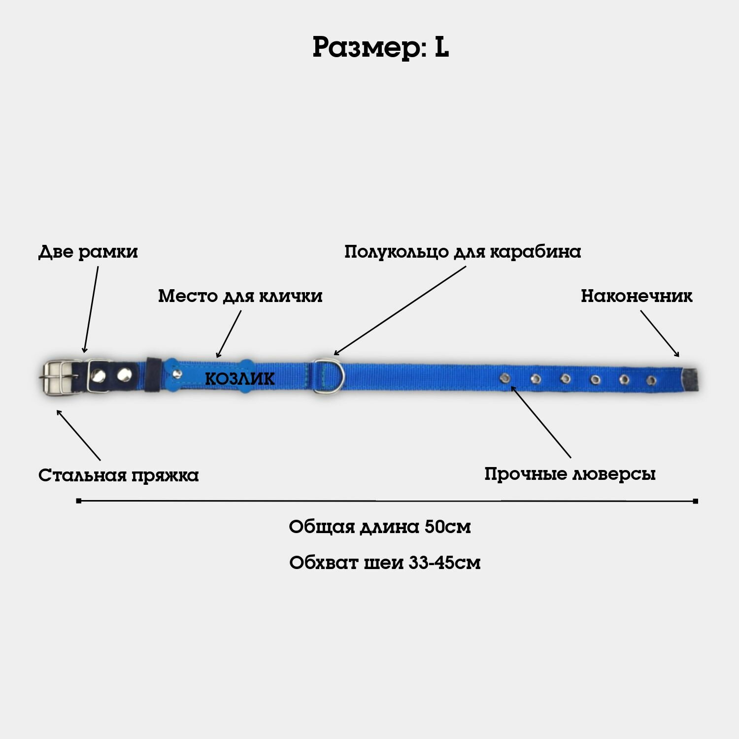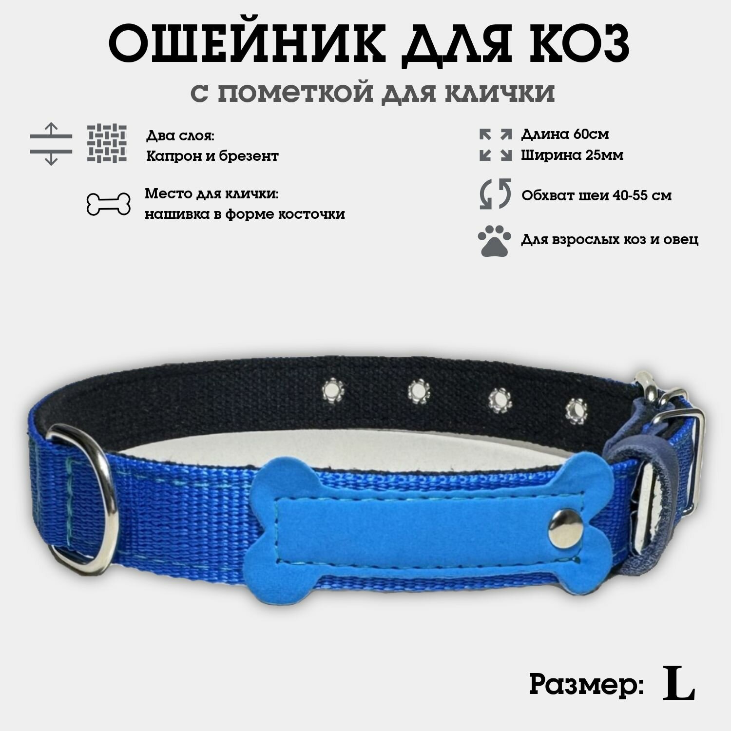 Ошейник для коз, овец, козлят, ягнят, двуслойный из капрона и брезента, усиленный L информация: