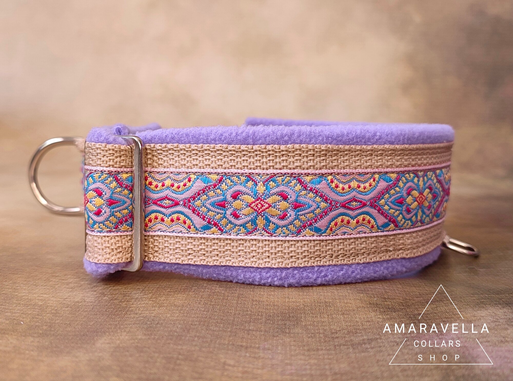 Ошейник пейсли огурцы для борзых собак, полуудавка "Мартингейл" ручной работы, 4см размер M со съемной кисточкой 1 500 ₽