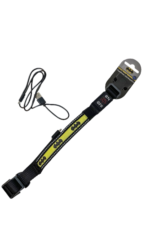 Отзывы на Buckle-Down ошейник для собак светящийся "Бэтмен" желтый 28-43|Размер: