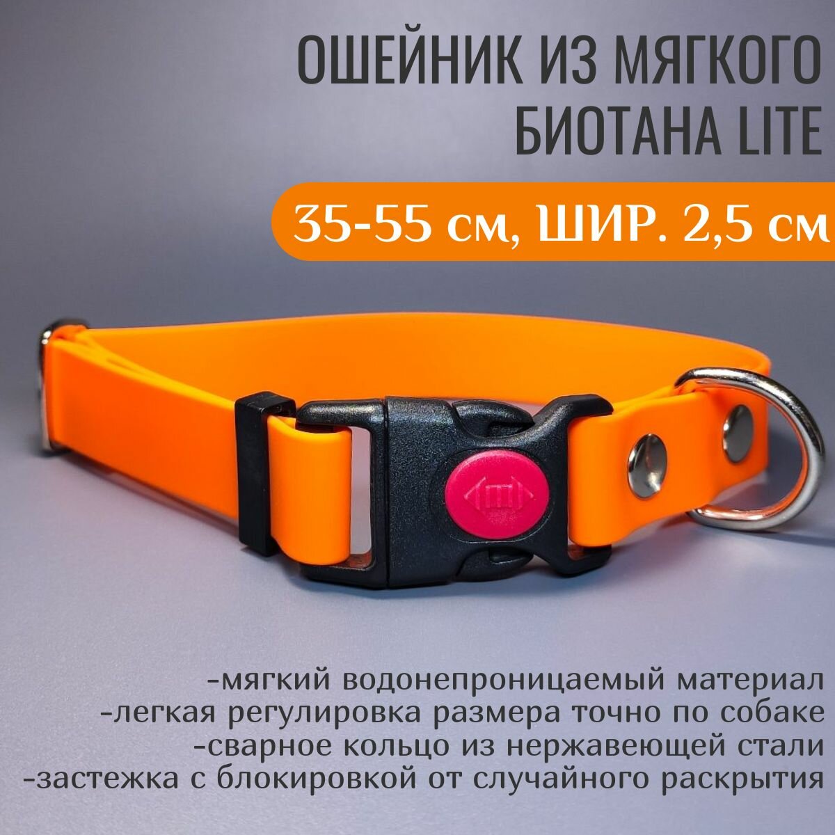 R-Dog Ошейник из мягкого биотана Lite, пластиковая застежка с фиксатором, цвет оранжевый, длина 35-55 см, ширина 2,5 см информация: