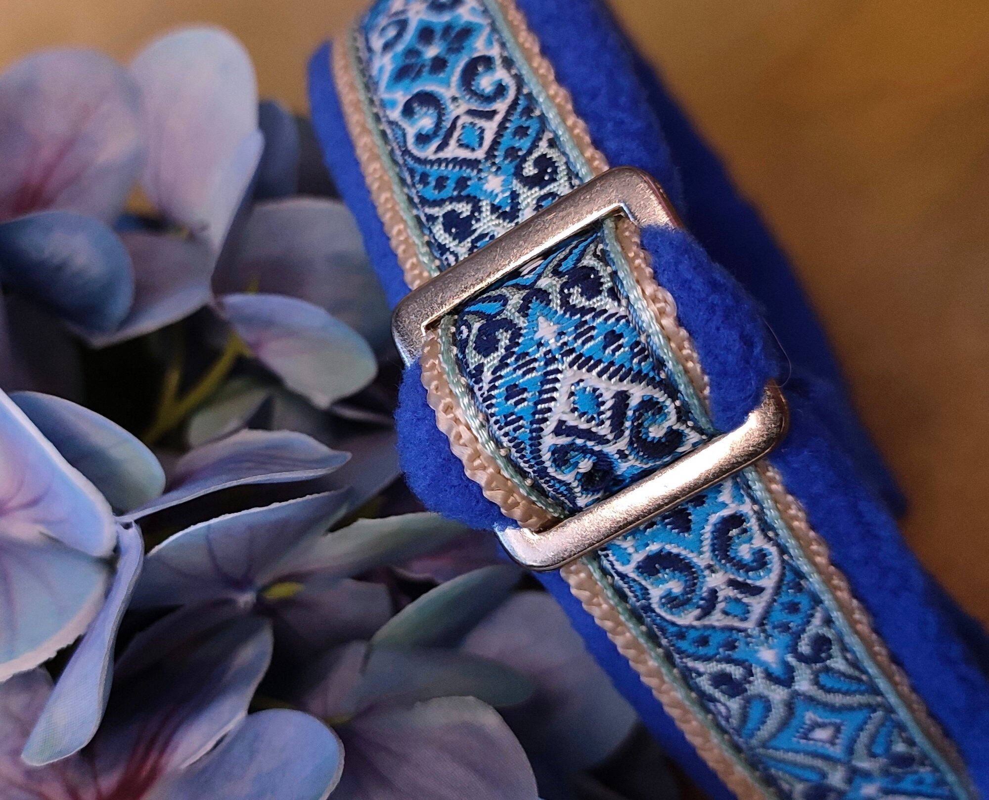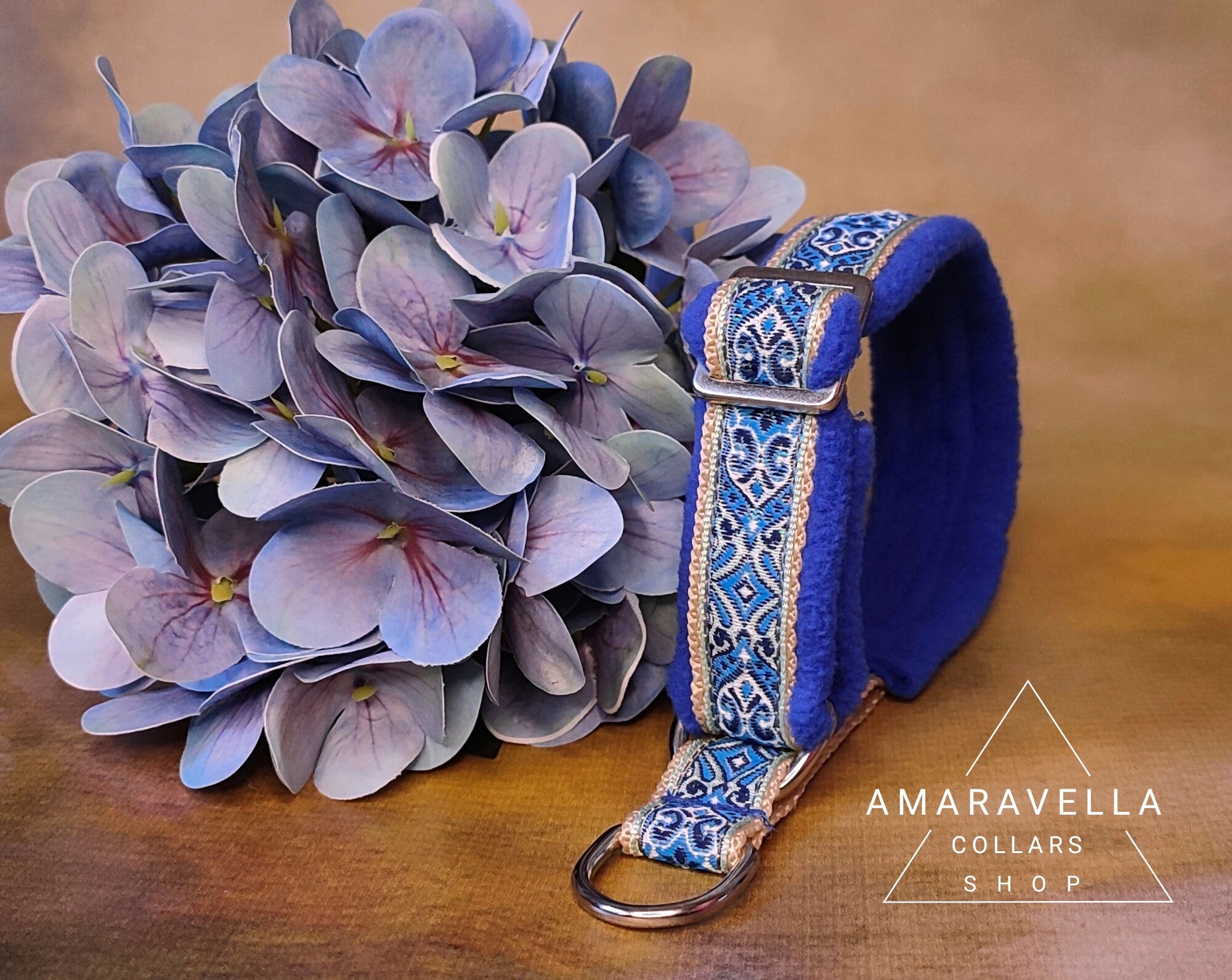 Яркий синий ошейник с поводком с восточным узором XS мартингейл полуудавка ручная работа для маленьких собак и щенков информация: