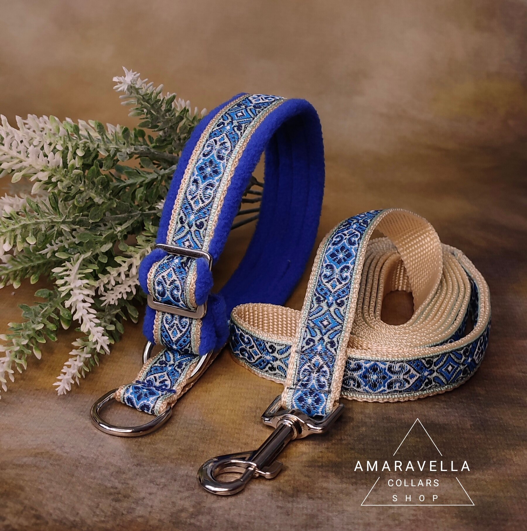 10 цен на Яркий синий ошейник с поводком с восточным узором XS мартингейл полуудавка ручная работа для маленьких собак и щенков