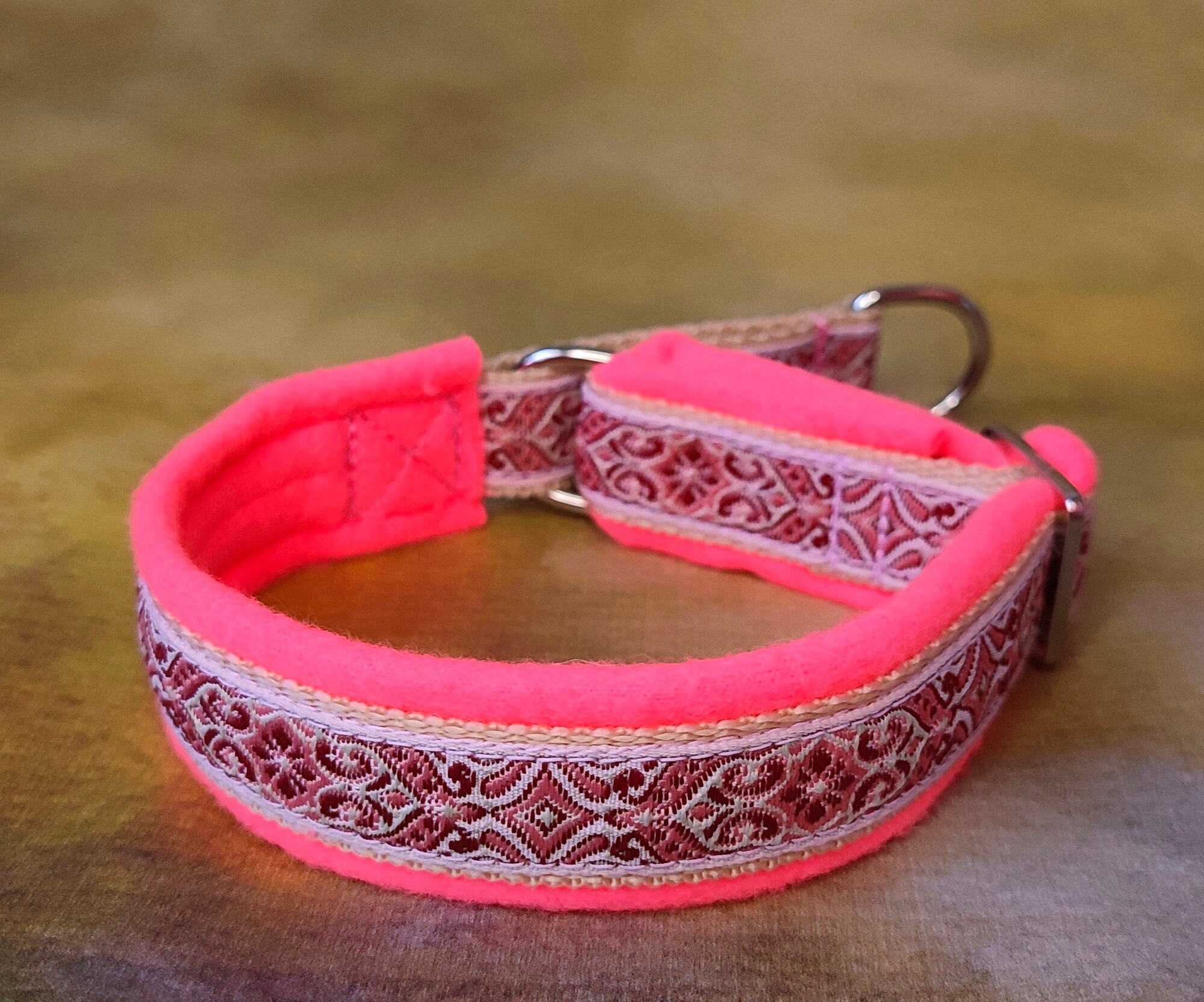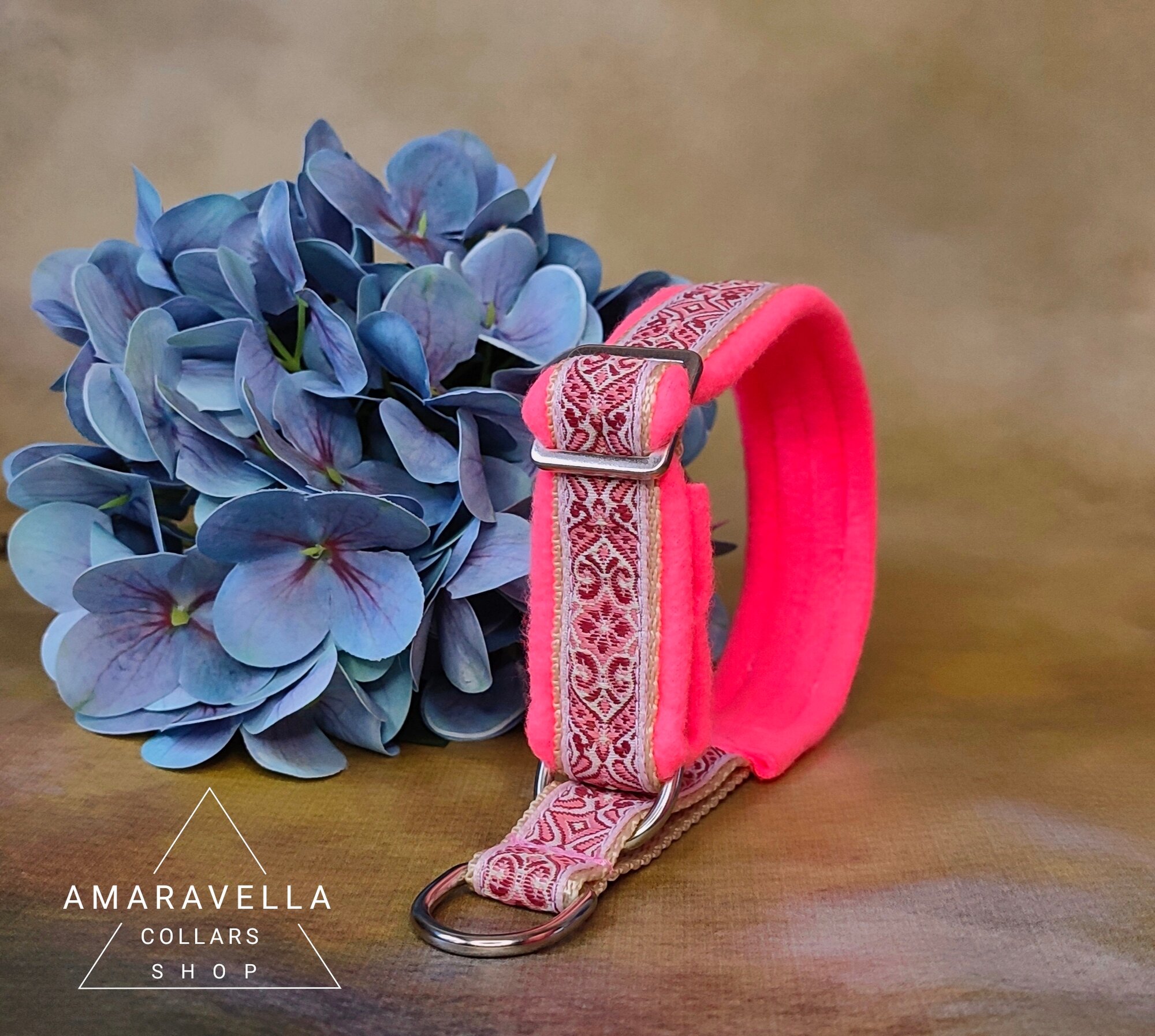 Яркий розовый неон ошейник с поводком с восточным узором XS мартингейл полуудавка ручная работа для маленьких собак информация:
