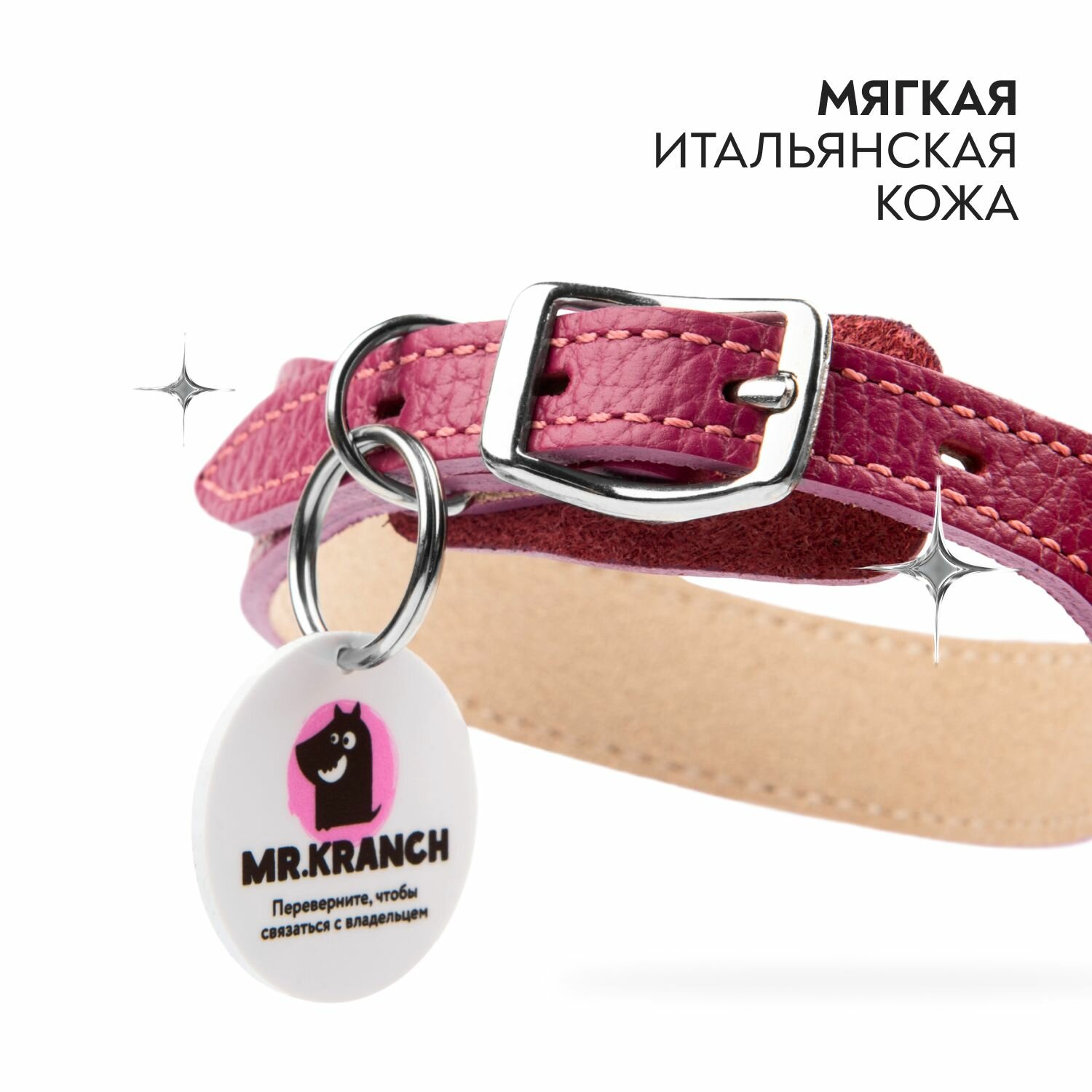 Ошейник Mr. Kranch для собак с QR-адресником, 33-40см, малиновый информация: