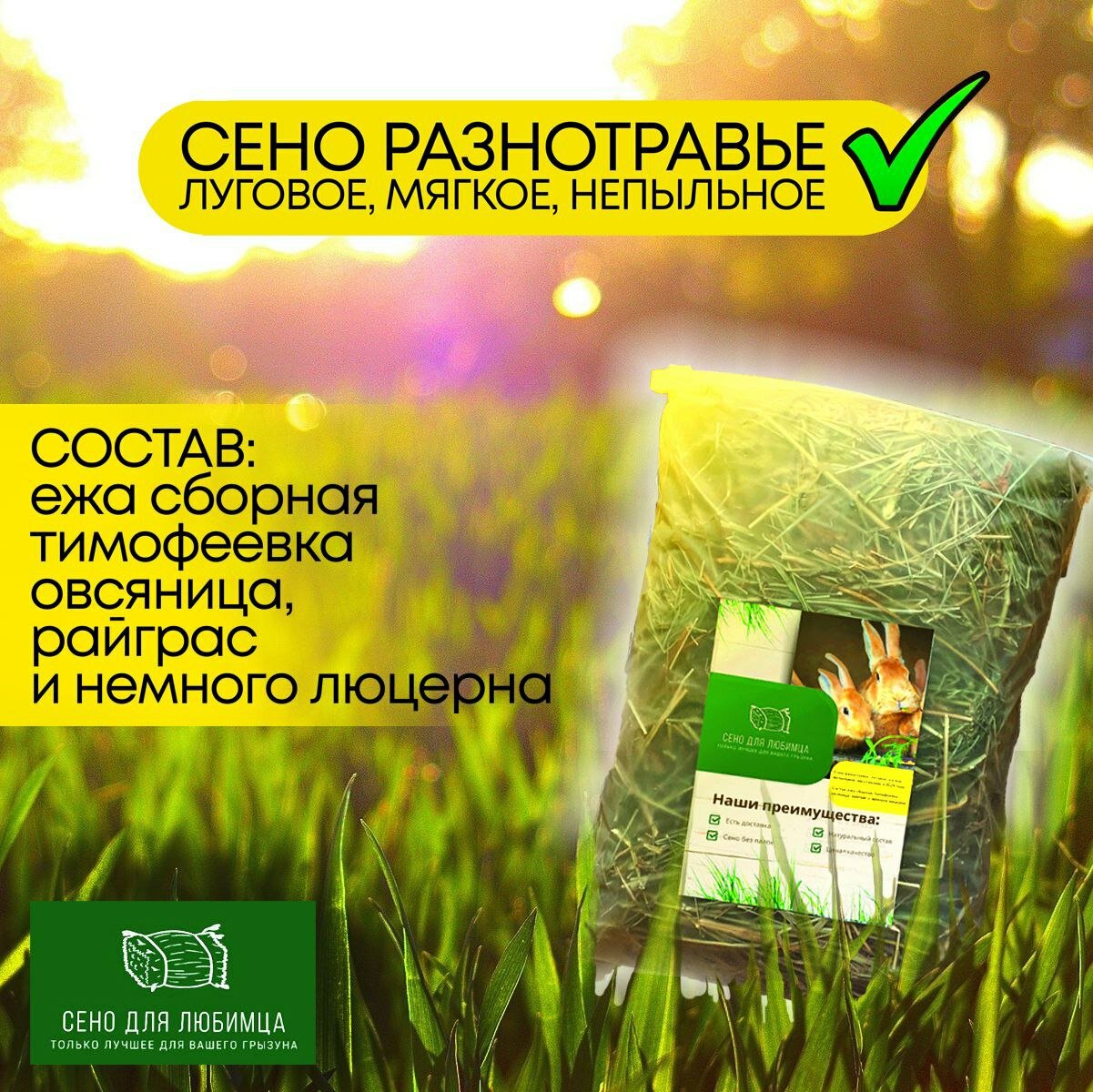 Отзывы на Натуральное и ароматное луговое сено высшего качества от бренда"ЗубастикМаркет"300г