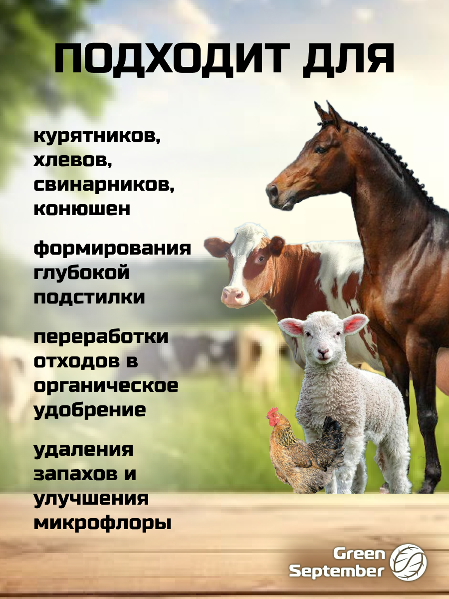 Био-подстилка для животных GreenSeptember, для КРС, коз, кроликов, овец, птиц, свиней информация:
