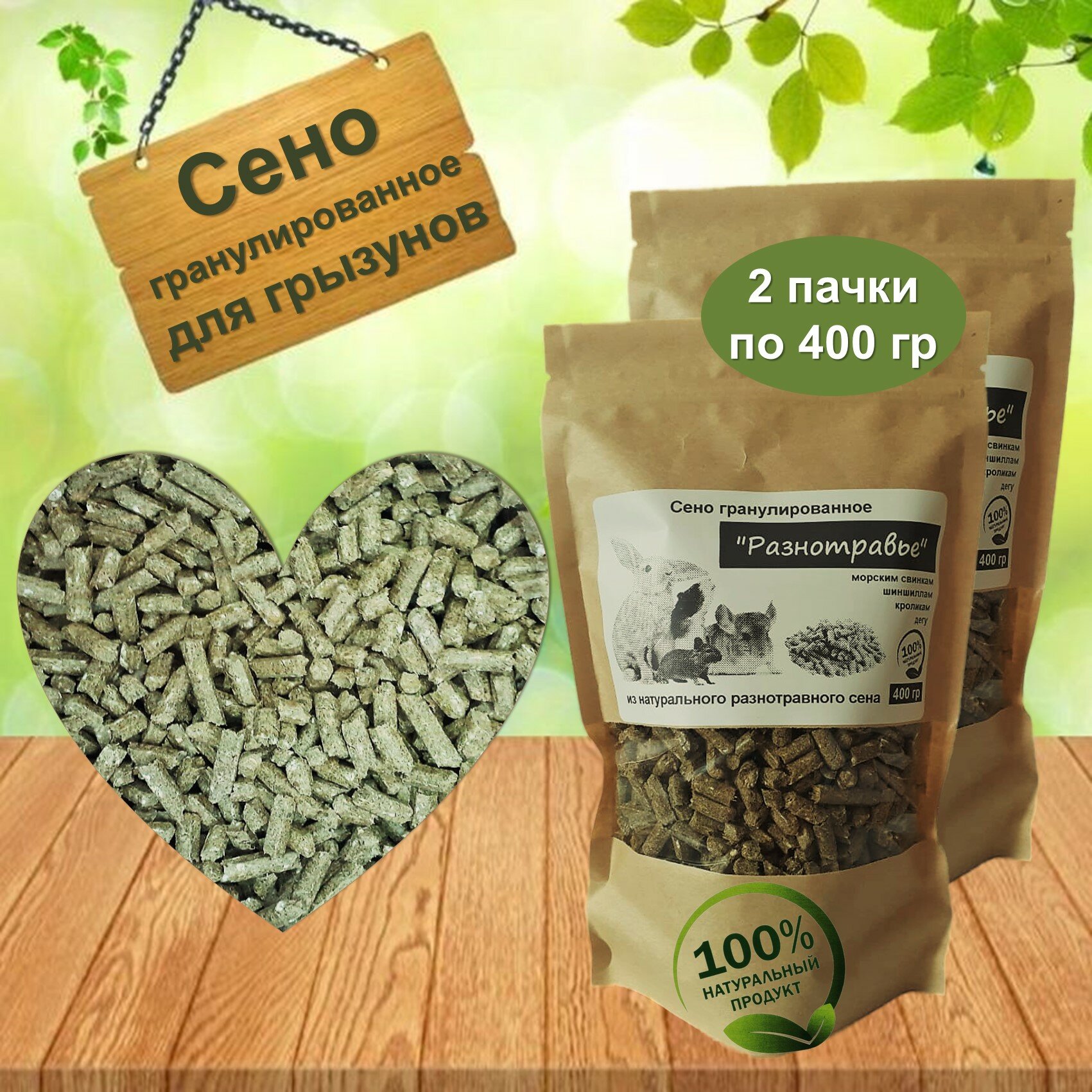 Сено гранулированное "Разнотравье" для грызунов, 2 пачки по 400 гр информация: