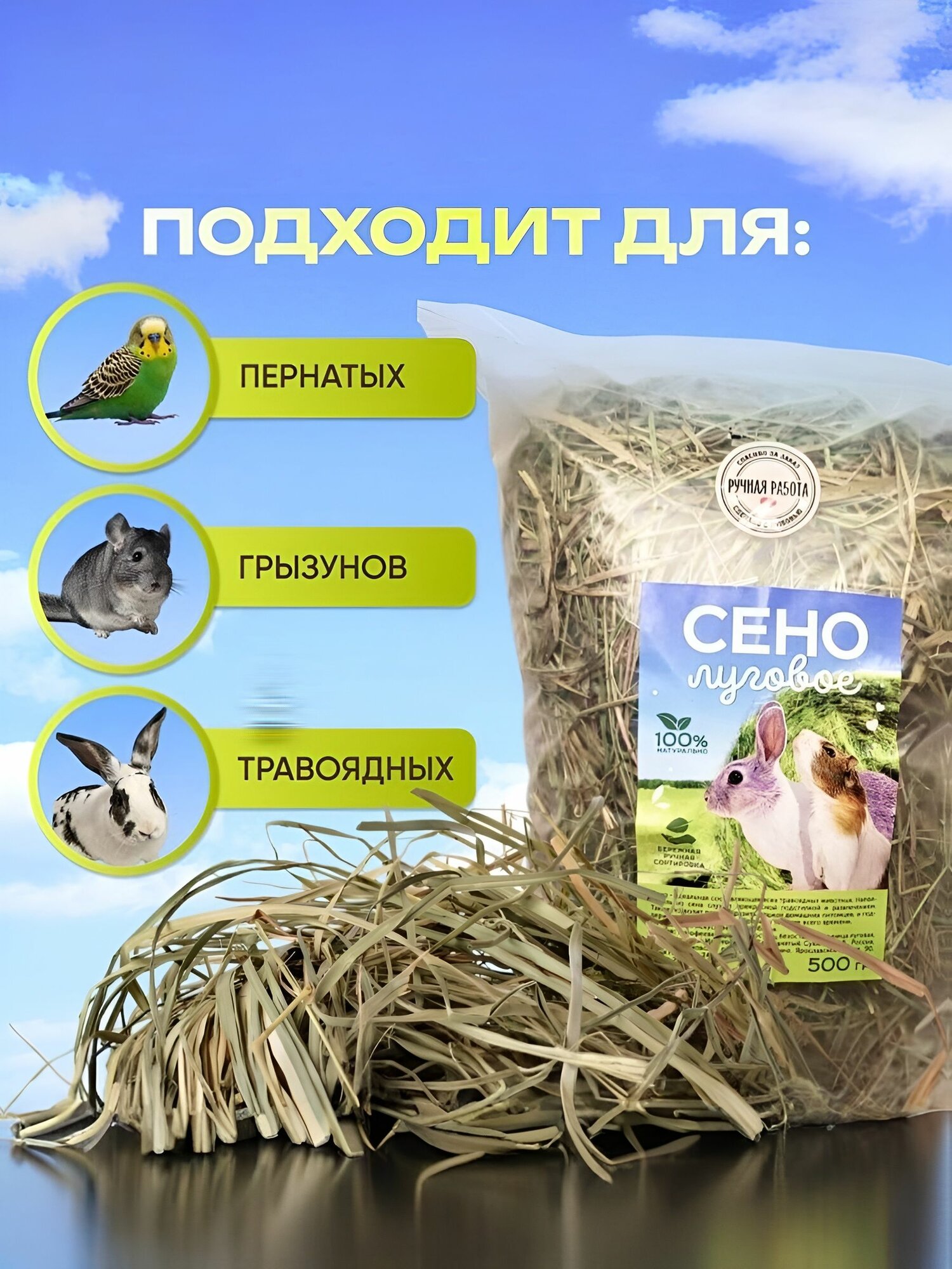 10 цен на Сено луговое для животных: лошадей, грызунов и кроликов 300 гр.