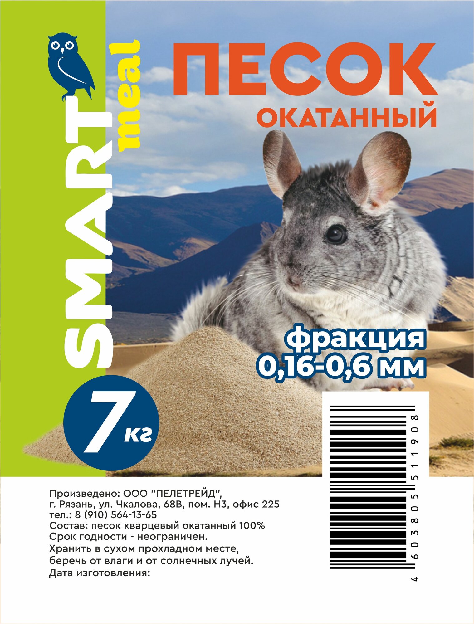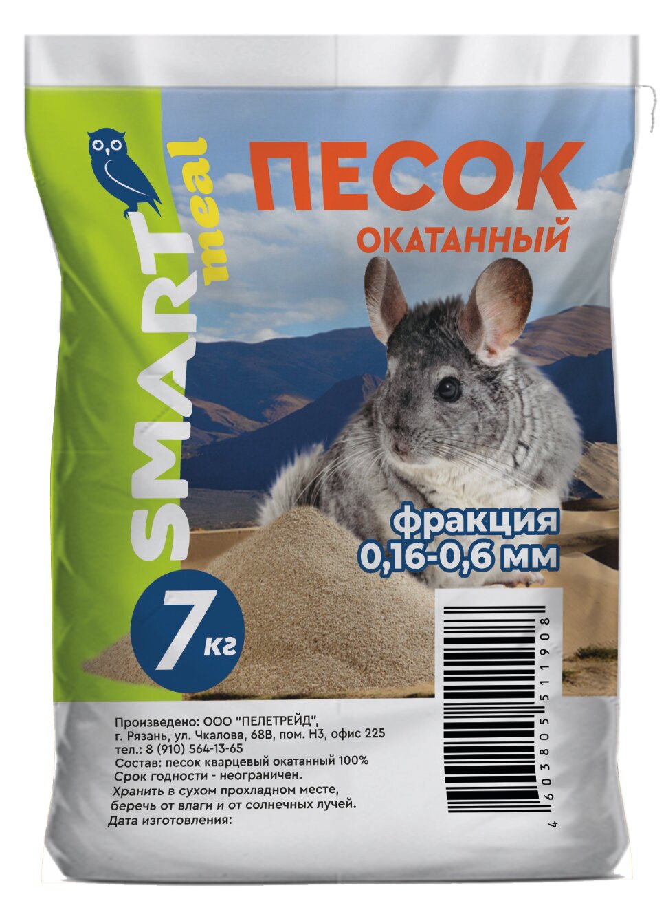 Песок для купания шиншилл, грызунов, птиц, террариумов, аквариумов минеральный (кварцевый окатанный) 7 кг информация: