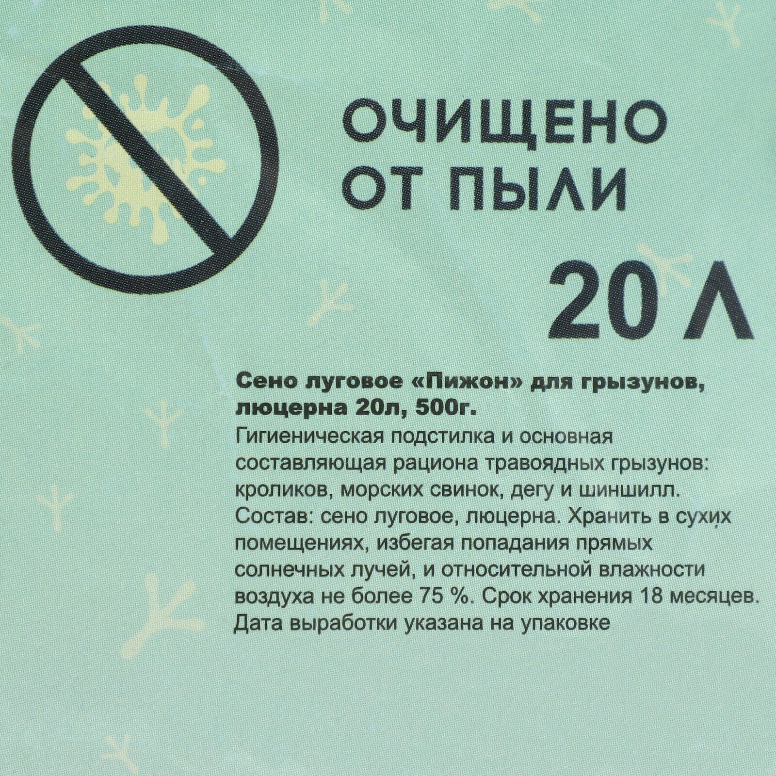Сено луговое с люцерной для грызунов, 20 л, 500 г информация: