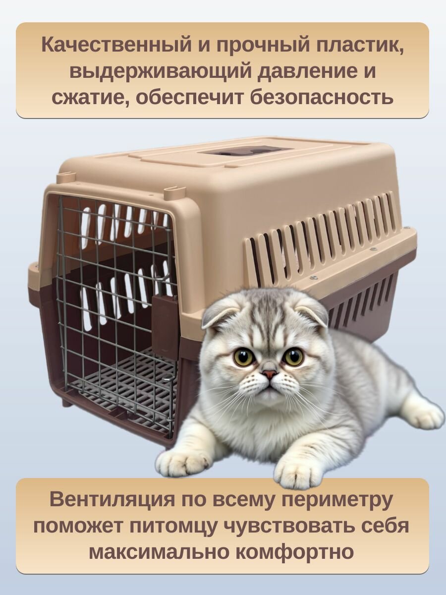 Переноска для кошек и собак средних пород пластиковая, с металлической дверцей и замком, 58х37х35 см, до 12 кг, коричневая информация:
