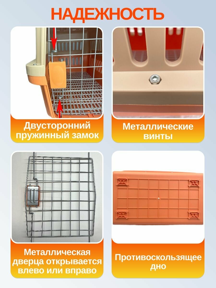 Переноска для собак и кошек пластиковая 66х47х45 см, с металлической дверцей и замком, до 20 кг, оранжевая информация:
