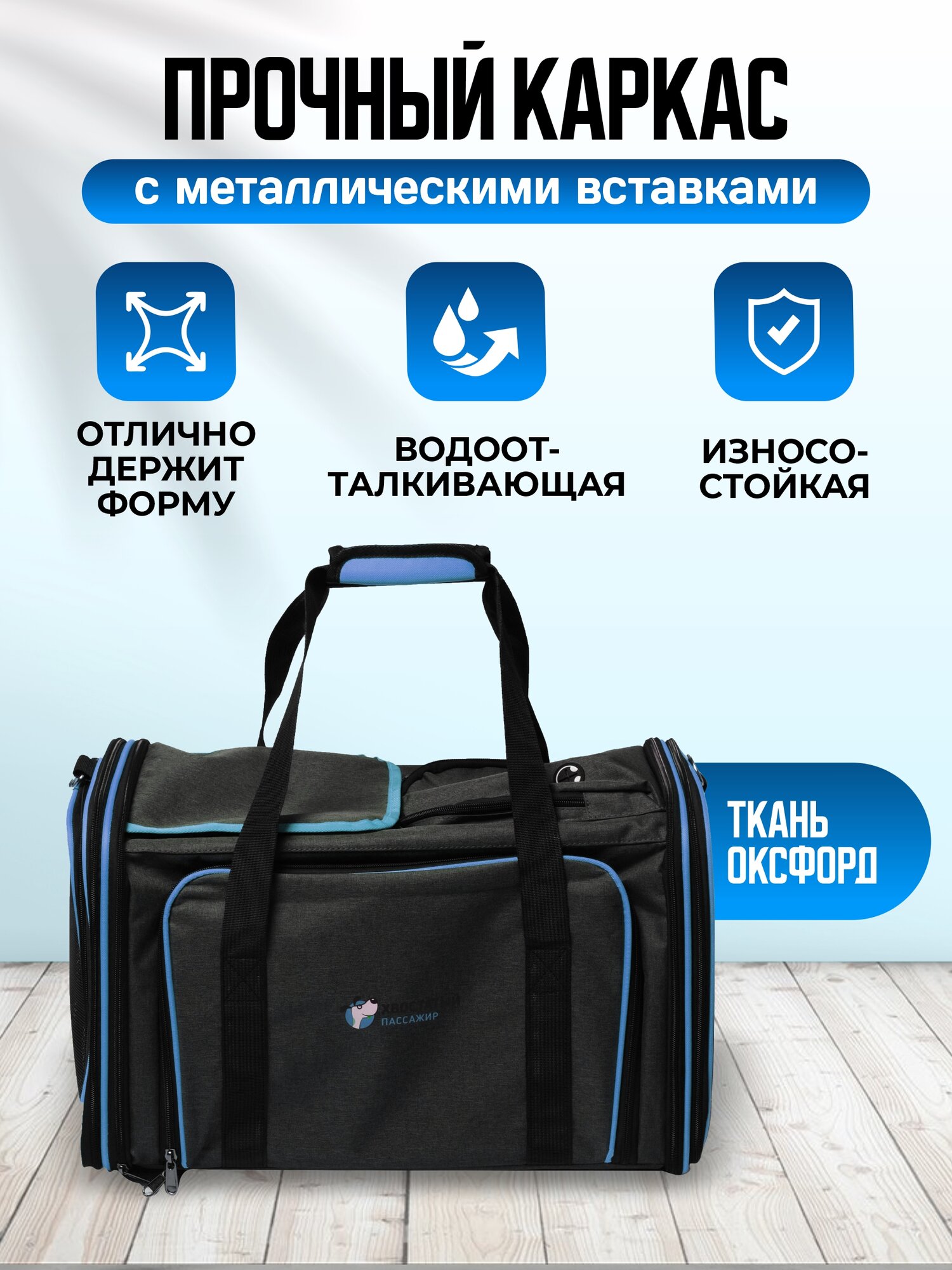 Сумка переноска для кошек и собак мелких пород Хвостатый Пассажир в самолет, серо-голубая информация: