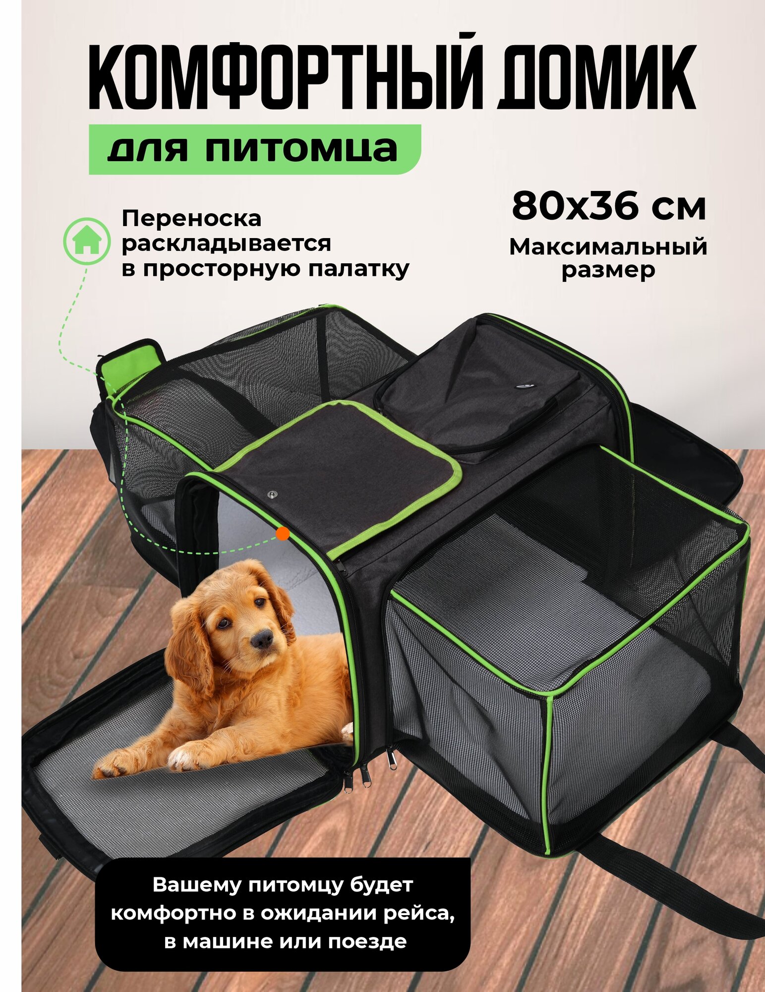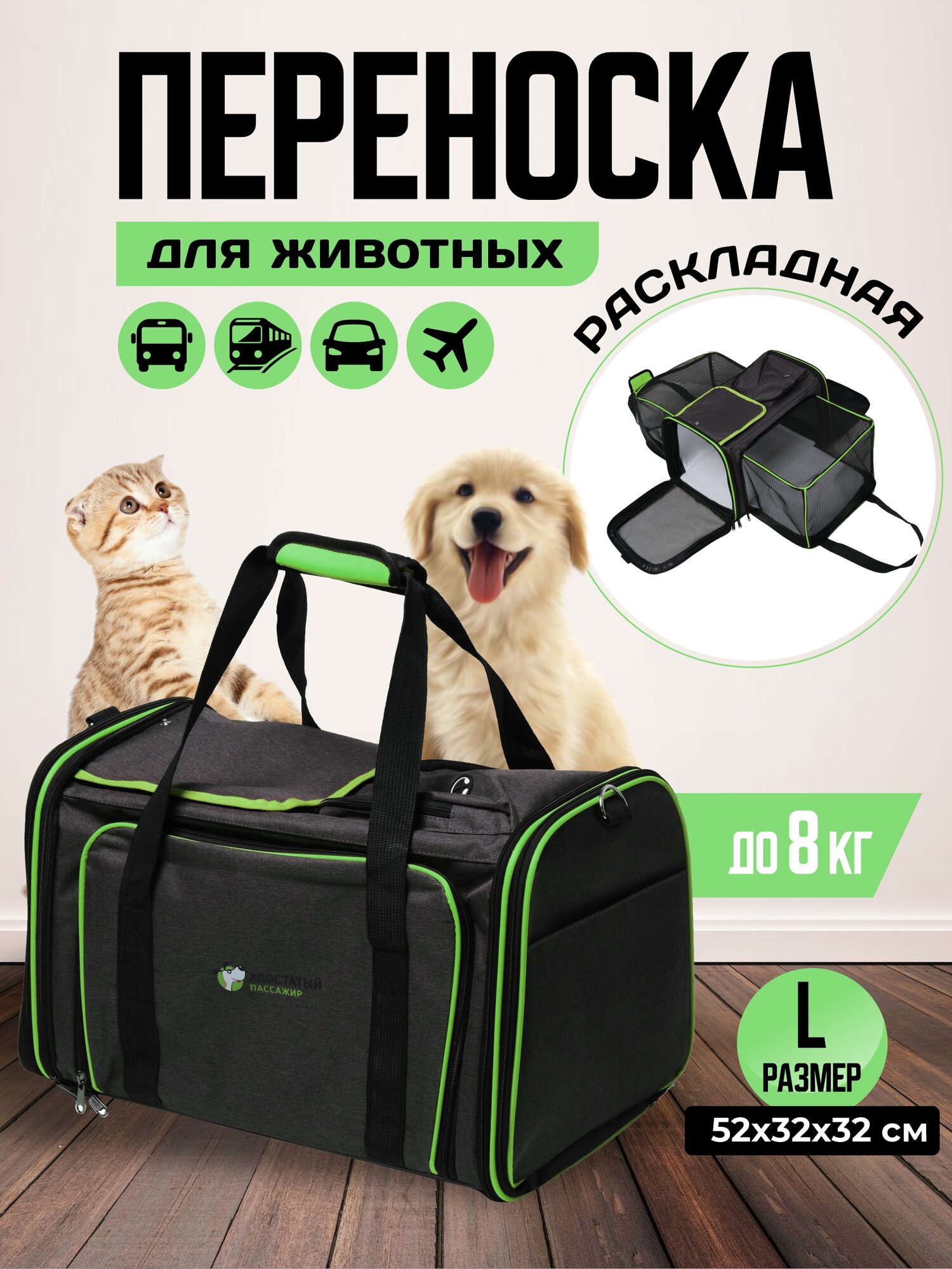 Переноска для кошек и собак мелких пород Хвостатый Пассажир большая, серо-зеленая информация:
