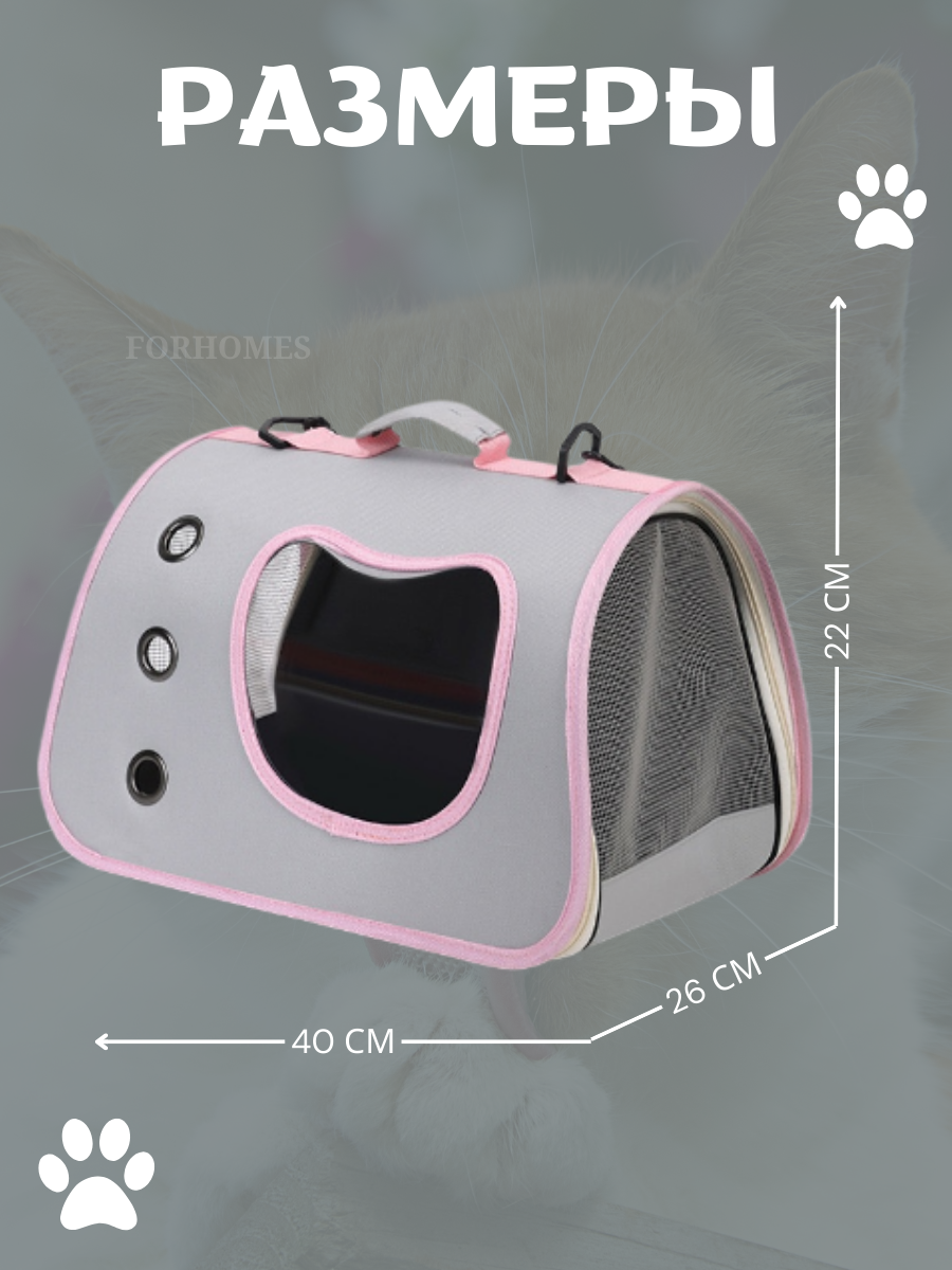 Сумка переноска для кошек, для собак мелких и средних пород, 43х25х28 см, Серый
