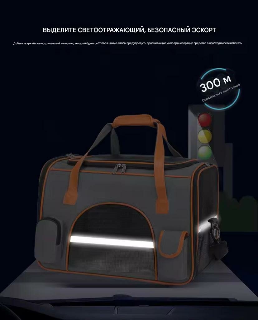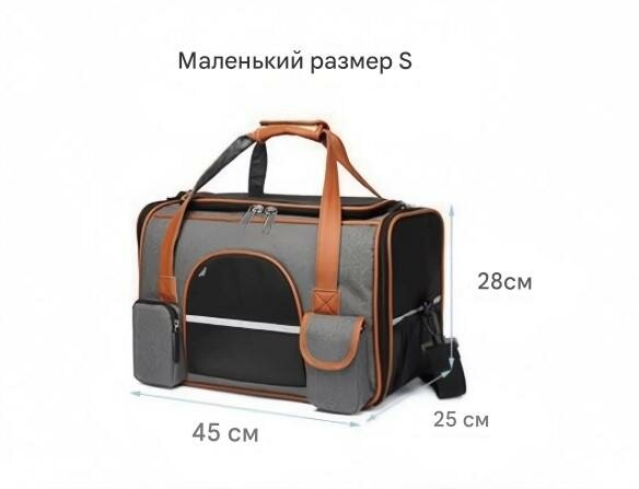 Сумка переноска для кошек, для собак мелких и средних пород, 43х25х28 см, Серый