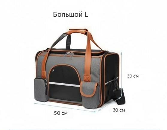 Сумка переноска для кошек, для собак мелких и средних пород, 43х25х28 см, Серый