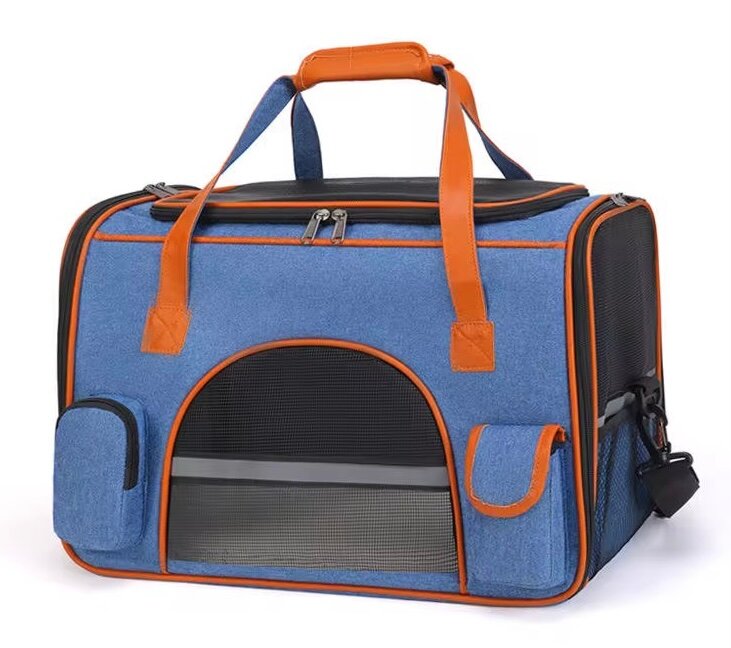 Отзывы на Мягкая переносная дорожная сумка для собак и кошек синего цвета. Размер L.