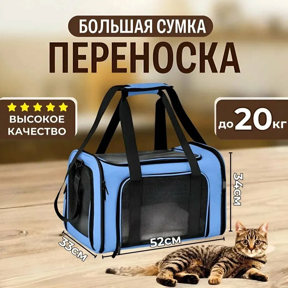 Переноска для кошек и собак средних пород в самолет складная голубая информация: