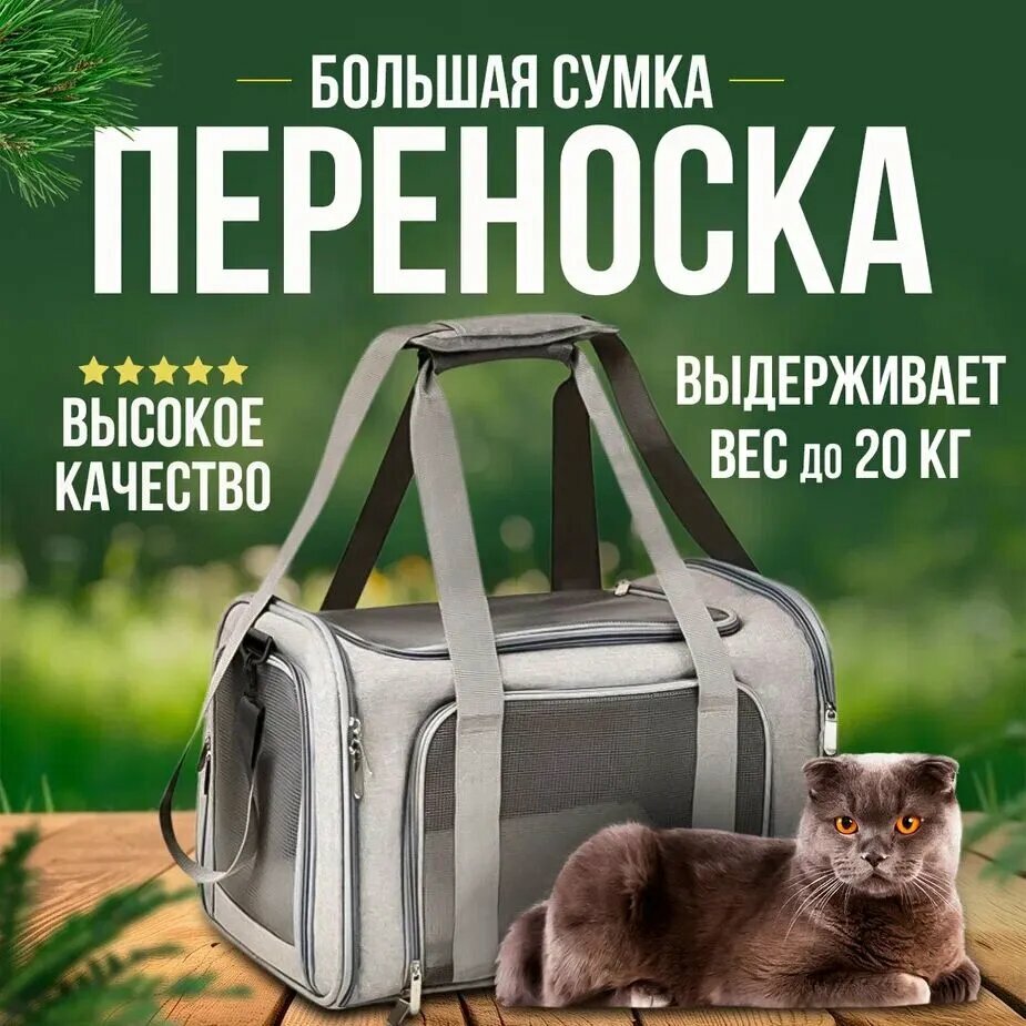 Сумка переноска для кошек, для собак мелких и средних пород, 43х25х28 см, Серый