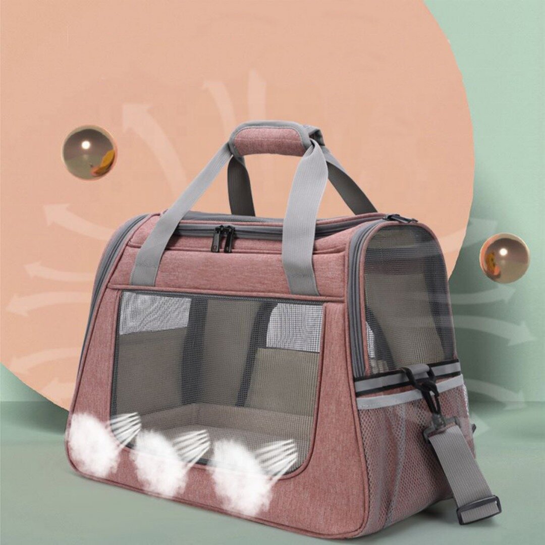 Отзывы на Сумка переноска для животных 45х23х35 см / Переноска для кошек и собак мелких пород с подстилкой-матрасиком и окошками из сетки / розовый