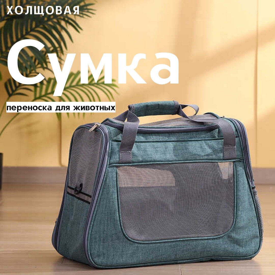 Сумка переноска для животных 45х23х35 см / Переноска для кошек и собак мелких пород с подстилкой-матрасиком и окошками из сетки / зеленый информация: