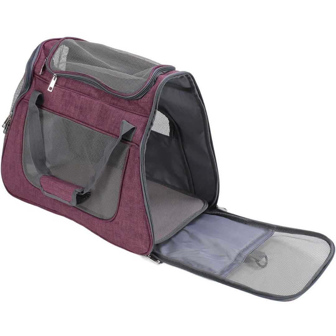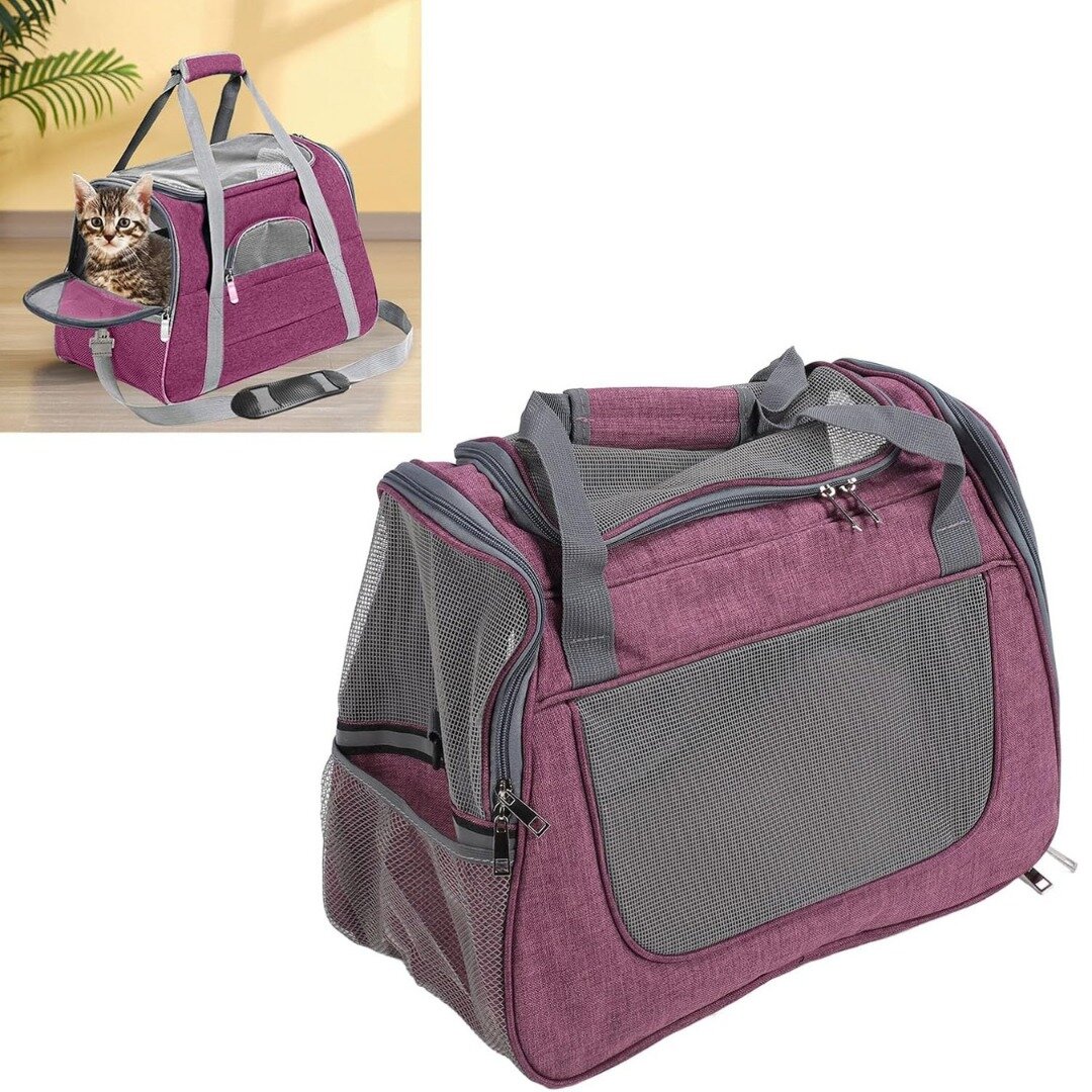 Отзывы на Сумка переноска для животных 45х23х35 см / Переноска для кошек и собак мелких пород с подстилкой-матрасиком и окошками из сетки / фиолетовый