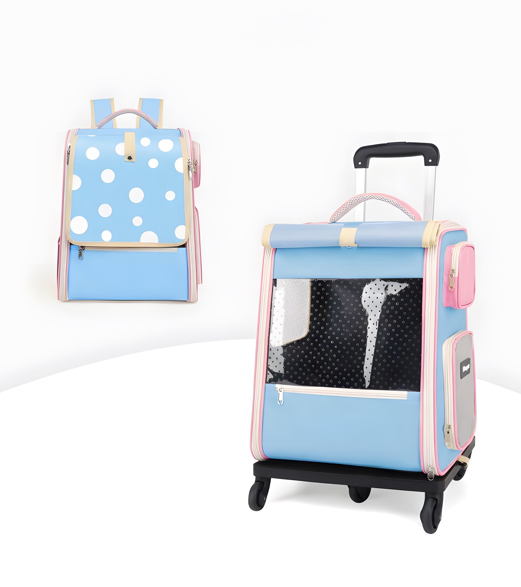 Рюкзак-переноска Streaming little dog, для кошек, с окошком и колесами, голубой информация: