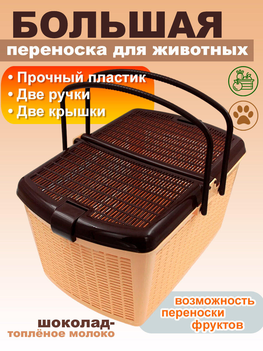 Переноска для кошек и собак большая 47х36х27,5 см пластик, шоколадно-бежевая информация: