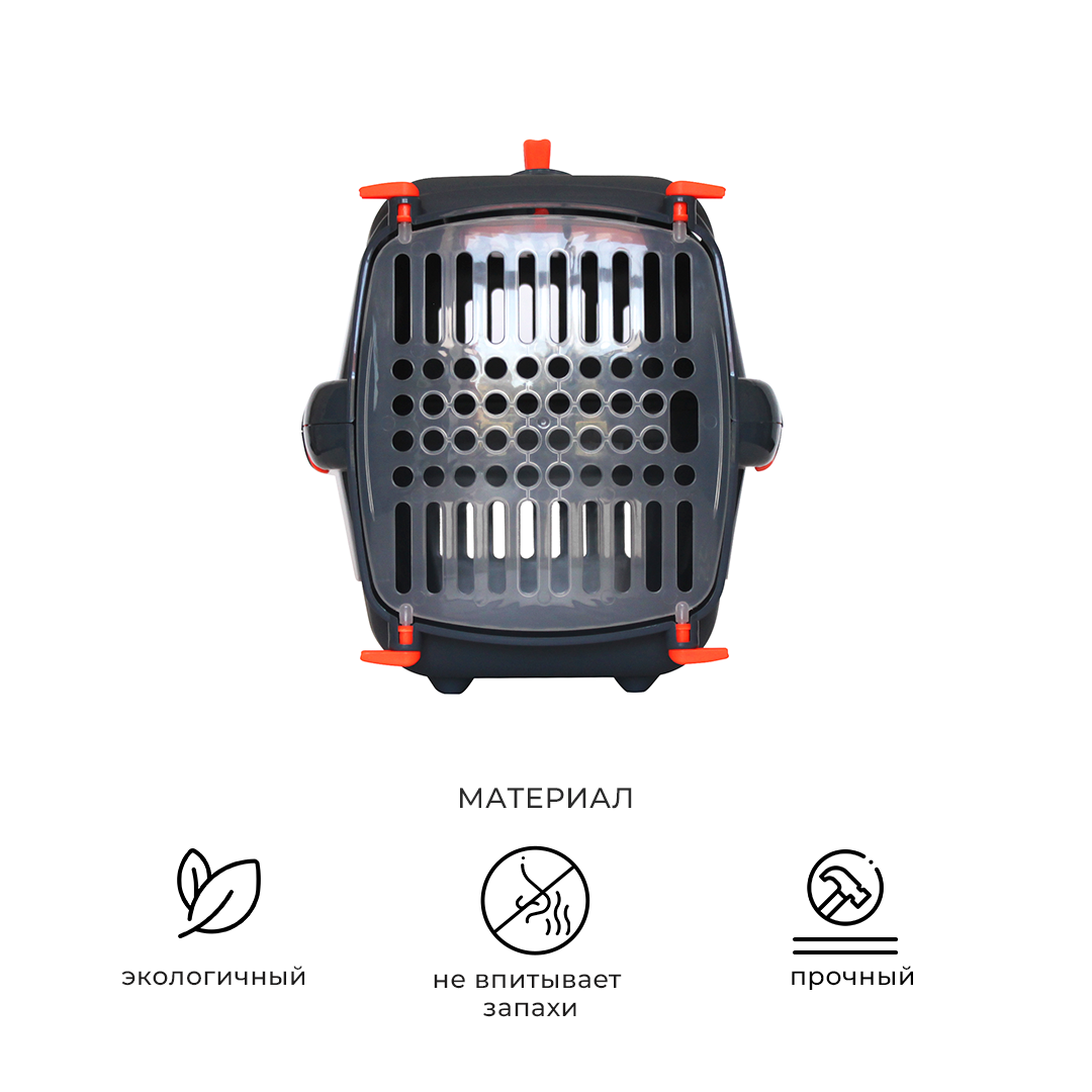 Пластиковая клиппер-переноска для кошек и собак ZOOSET, 48х32х32 см, с плечевым ремнем, серая/оранжевая 1 295 ₽