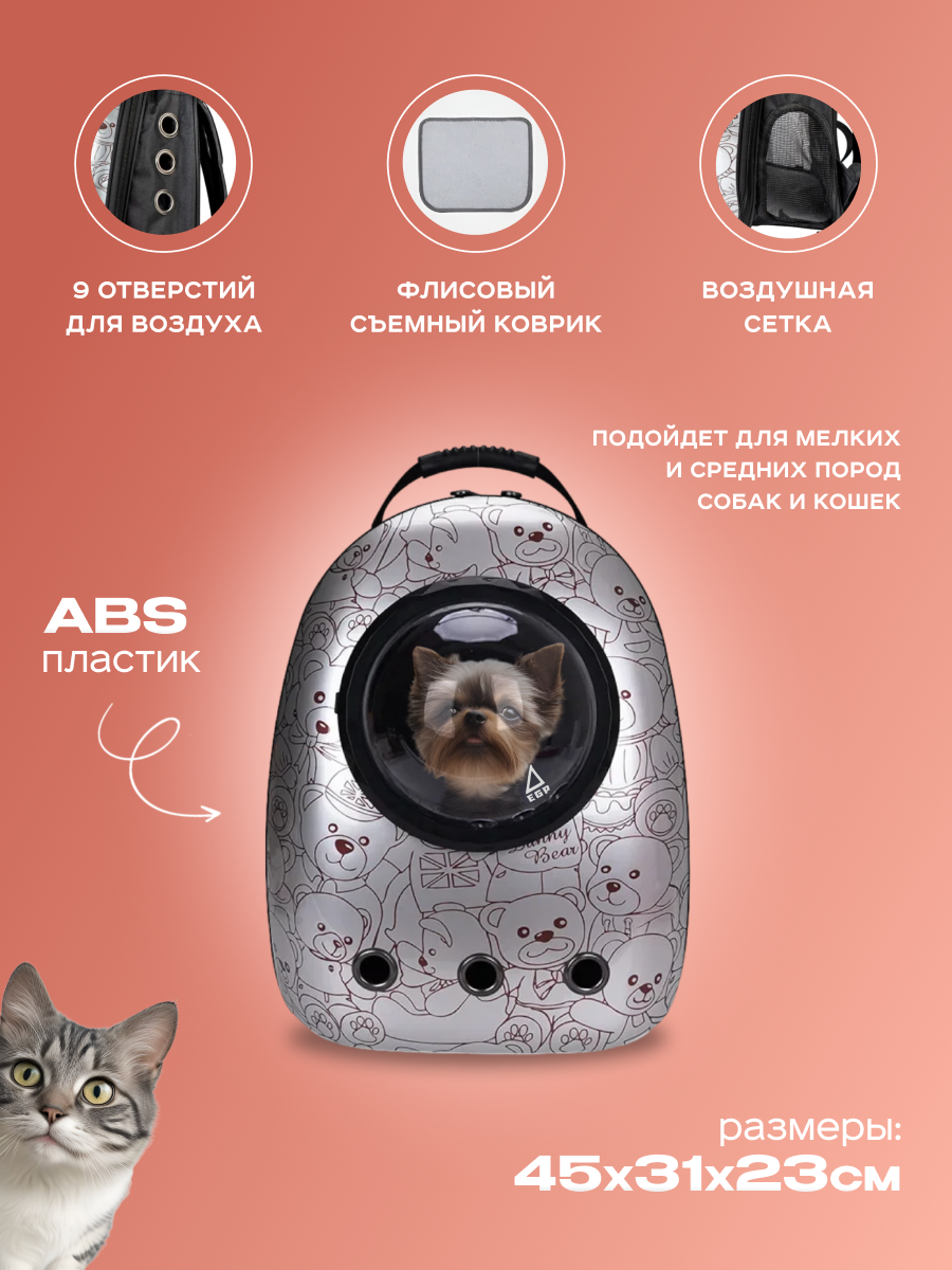 10 цен на Рюкзак-переноска для мелких животных с иллюминатором / Серебристый