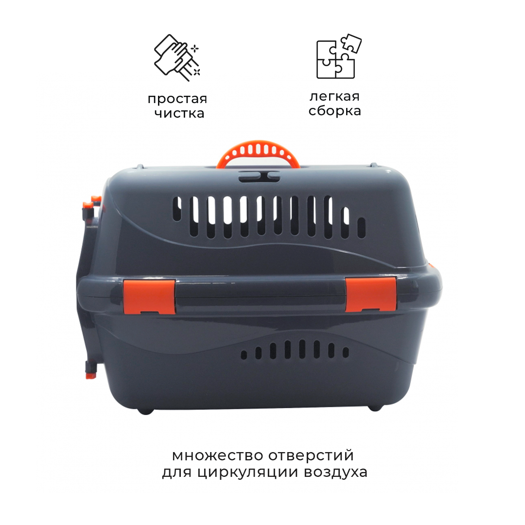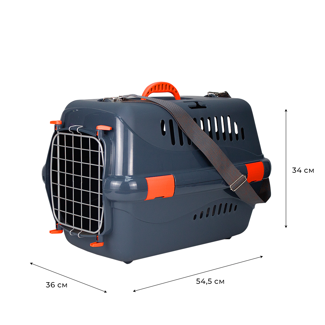 Пластиковая переноска для кошек и собак ZOOSET, 54,5х36х34 см, металлическая дверца и плечевой ремень, серый/оранжевый информация: