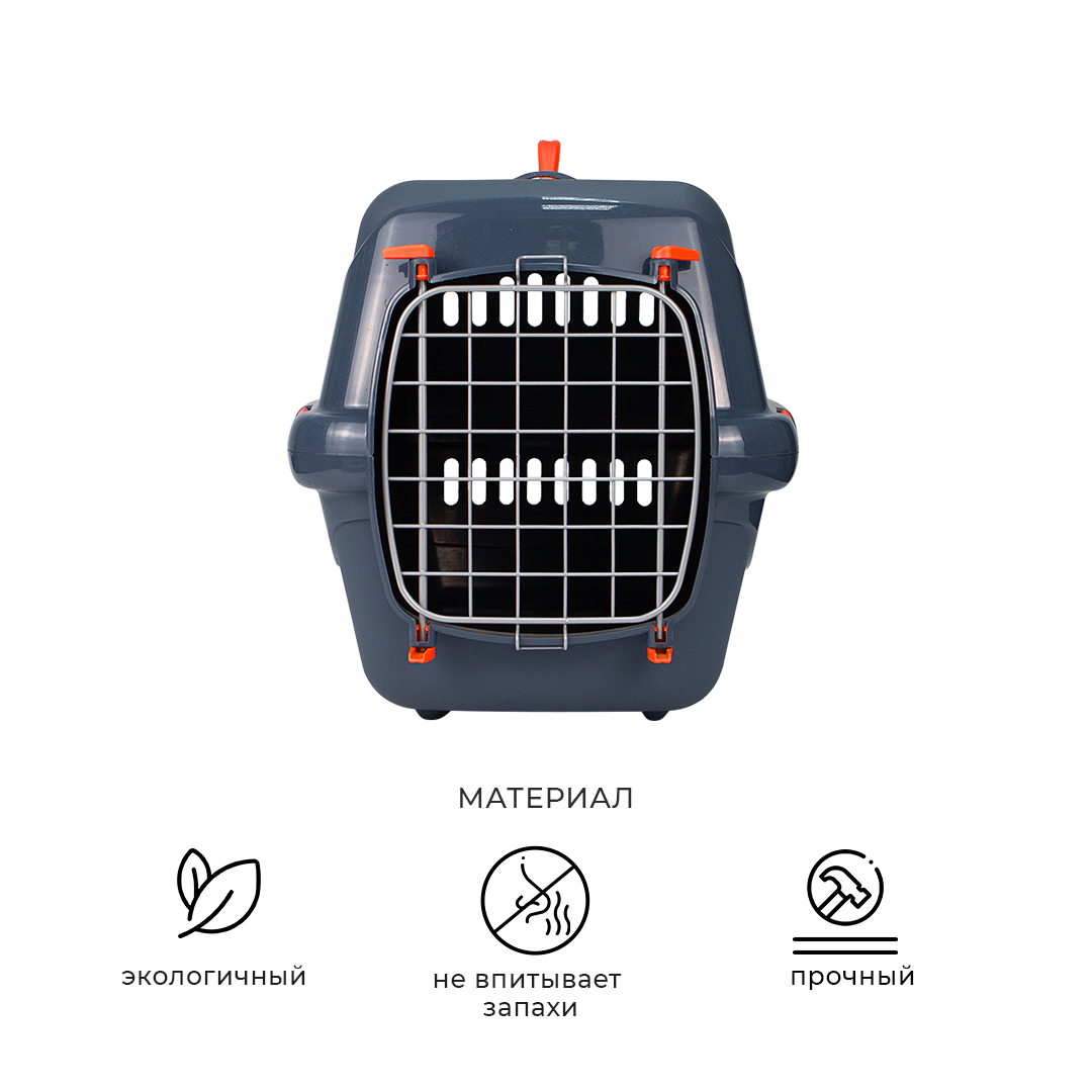 Пластиковая переноска для кошек и собак ZOOSET, 42х29х29,5 см, металлическая дверца и плечевой ремень, серый/оранжевый 1 835 ₽
