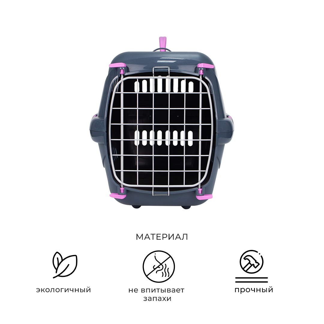 Пластиковая переноска для кошек и собак ZOOSET, 42х29х29,5 см, металлическая дверца и плечевой ремень, серый/сиреневый 1 835 ₽